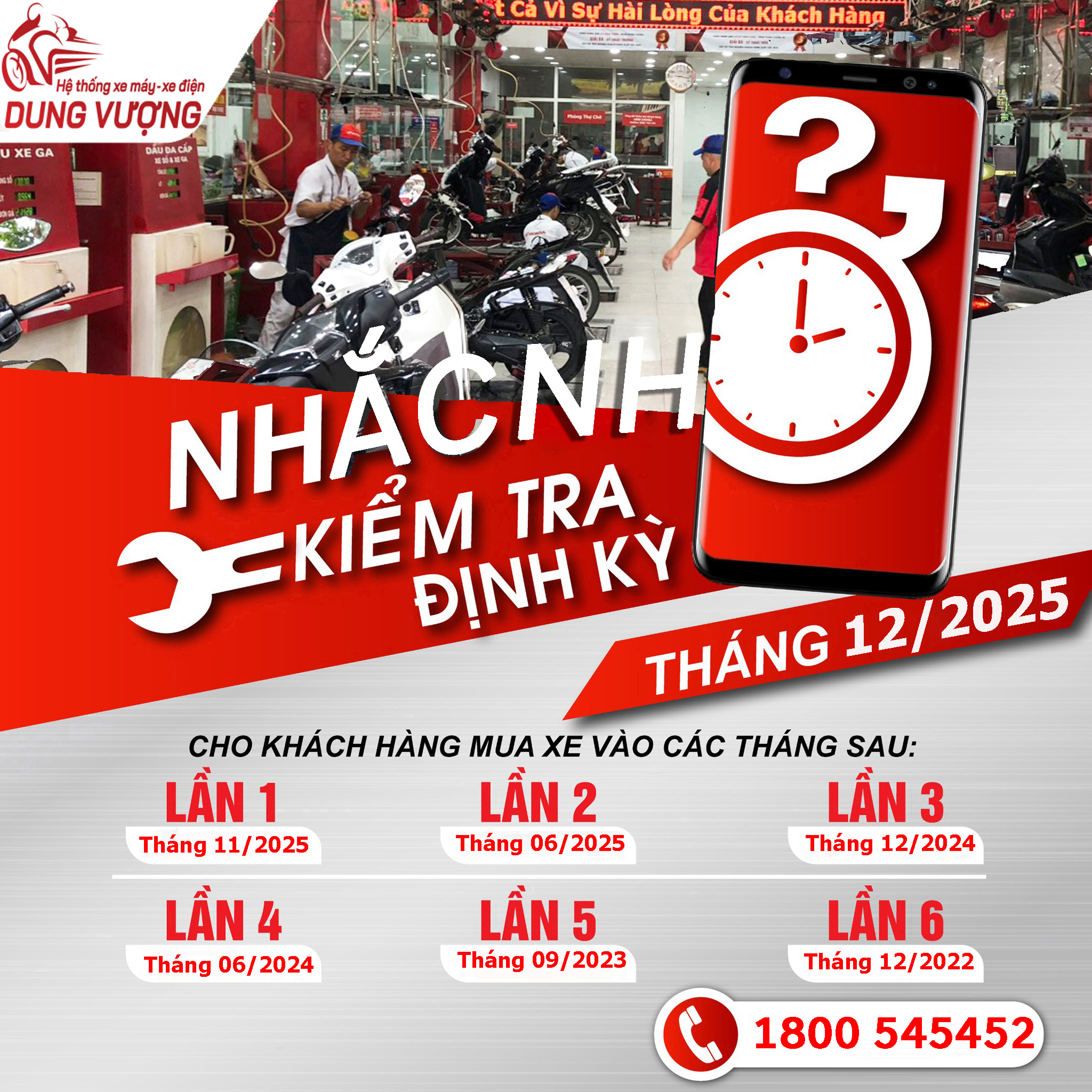 Hệ thống xe máy - Xe điện Dung Vượng xin gửi đến Quý khách hàng lịch kiểm tra định kỳ xe tháng 12/2025.