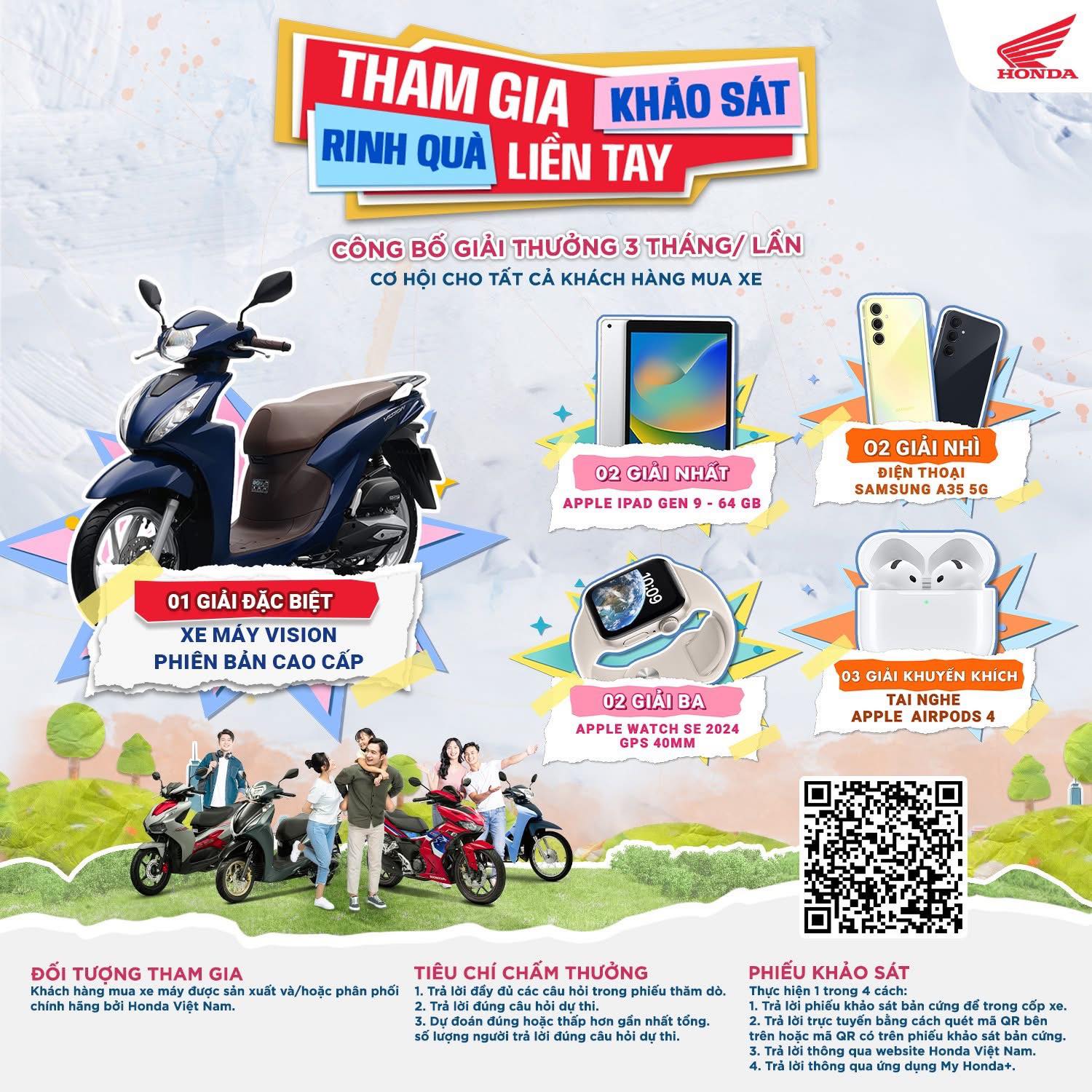 Khách hàng mua xe Honda không chỉ sở hữu chiếc xe chất lượng mà còn có cơ hội nhận về những phần quà giá trị cực khủng từ chương trình khảo sát ý kiến khách hàng của Honda Việt Nam.