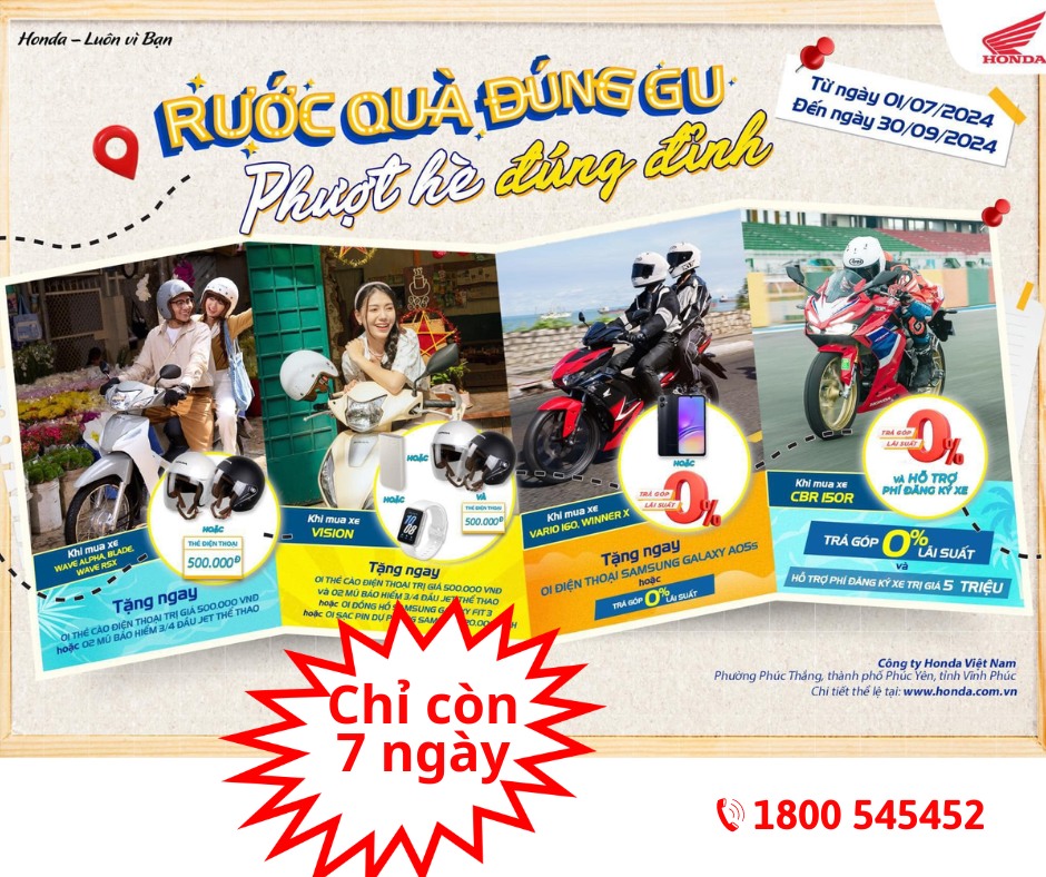 Cơ hội rước xe xinh cùng quà tặng linh đình chỉ còn 7 ngày là kết thúc, bạn ơi nhớ đừng bỏ lỡ!