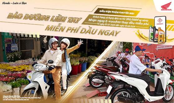 Mong muốn khách hàng có thể trải nghiệm và tận hưởng mọi hành trình một cách trọn vẹn và an tâm, Công ty Honda Việt Nam (HVN) triển khai chương trình khuyến mãi “Bảo dưỡng liền tay, miễn phí dầu ngay” (CTKM). Chương trình mang đến ưu đãi hấp dẫn cho khách hàng đưa “xế cưng” tới làm dịch vụ tại các các Cửa hàng bán xe máy và Dịch vụ do Honda ủy nhiệm (HEAD) trên toàn quốc.