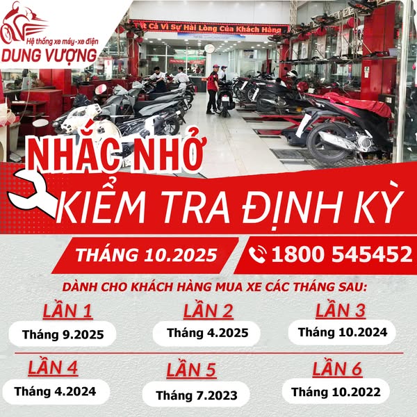 Hệ thống xe máy - Xe điện Dung Vượng xin gửi đến Quý khách hàng lịch kiểm tra định kỳ xe tháng 10/2025.