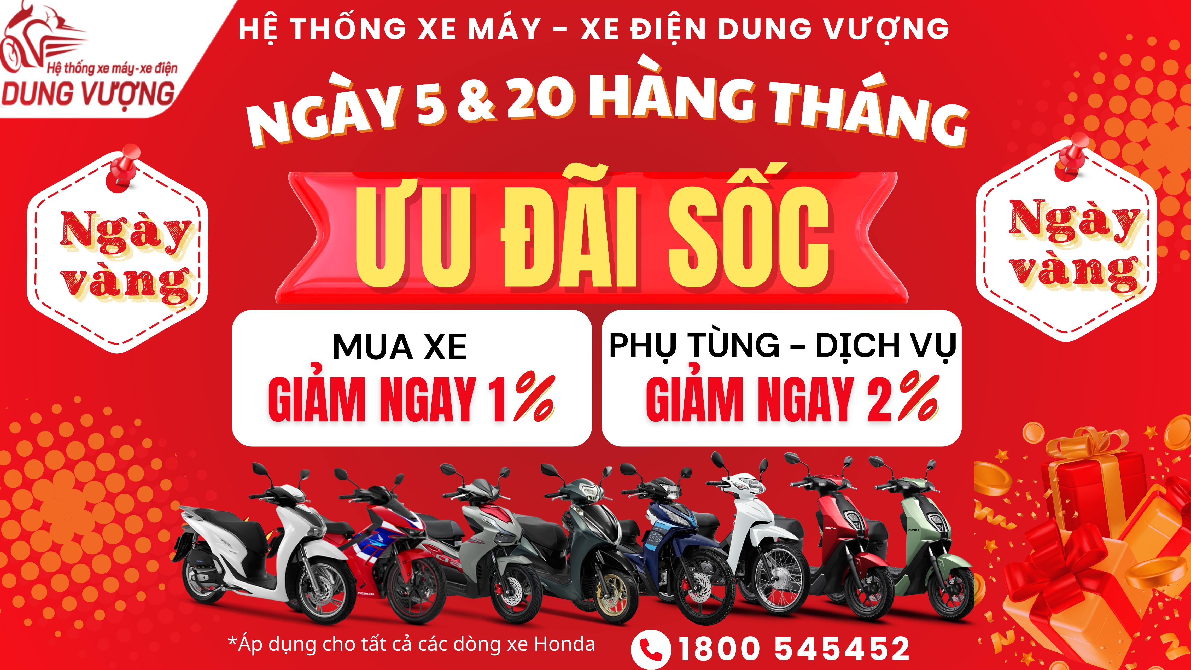 Hệ Thống Xe Máy – Xe Điện Dung Vượng tung ưu đãi KHỦNG dành riêng cho bạn: