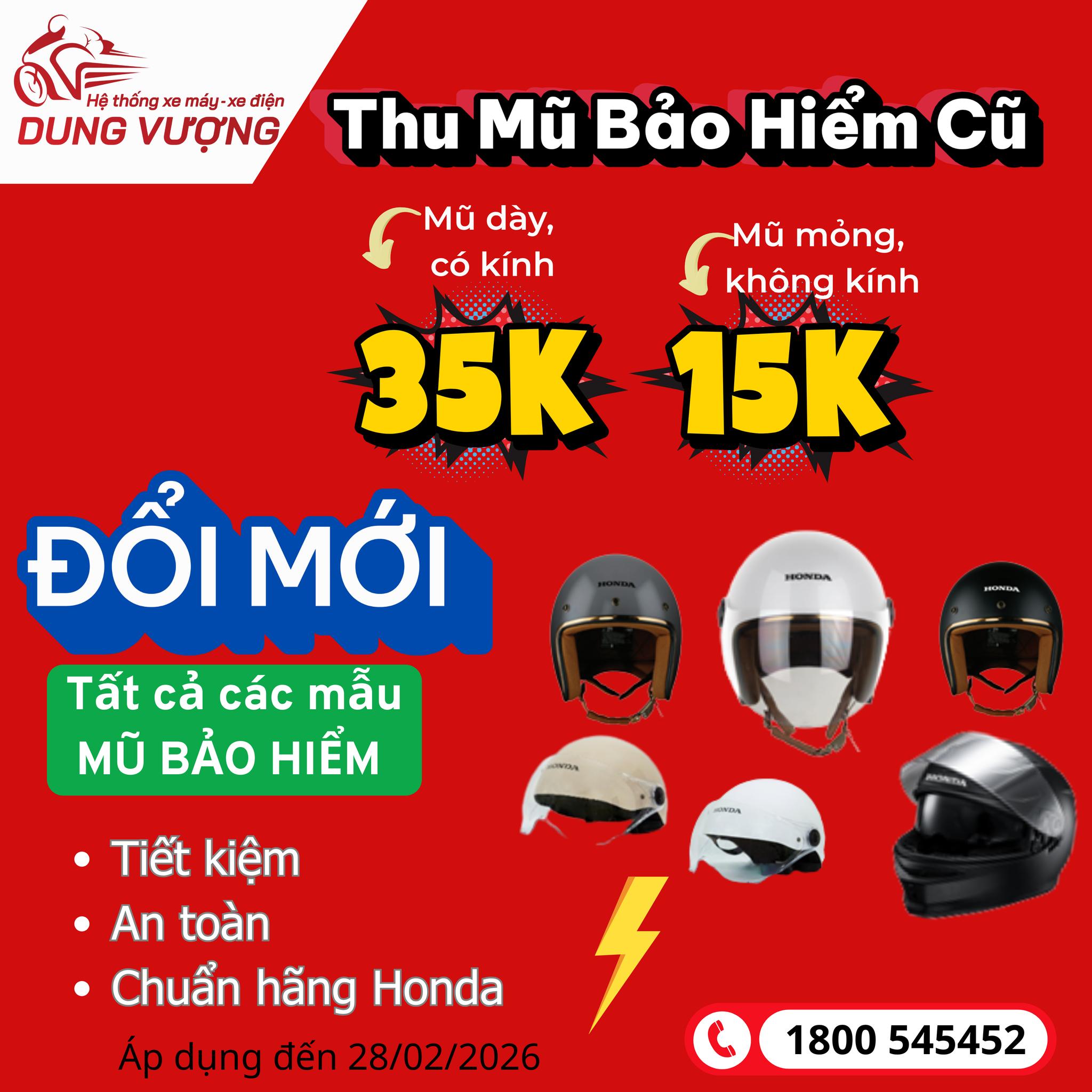 THU MŨ BẢO HIỂM CŨ – ĐỔI MŨ MỚI CHUẨN Honda
