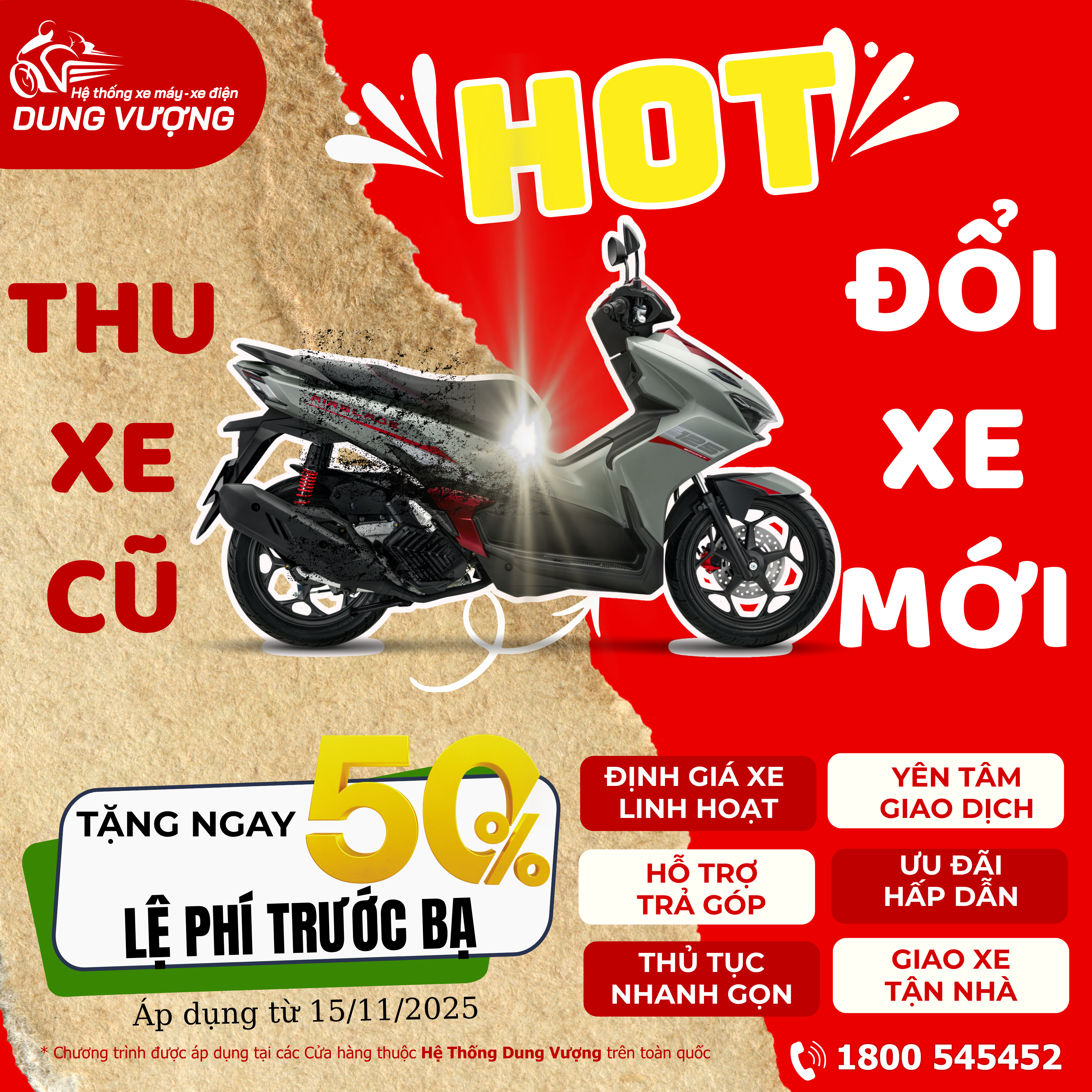 Ghé ngay Hệ Thống Xe Máy – Xe Điện Dung Vượng để đổi xe mới – Nhận quà liền tay!