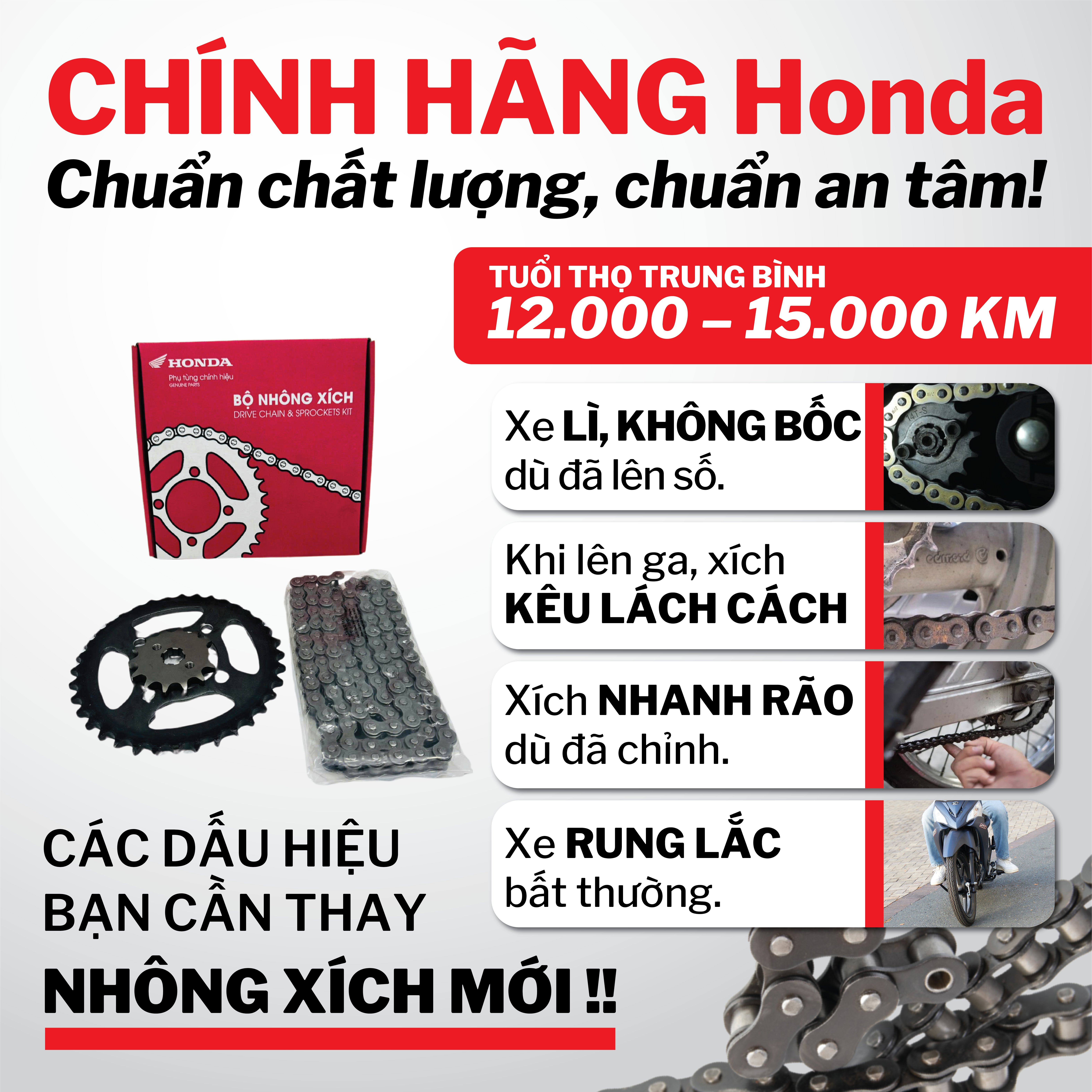 - Nhông xích “zin” Honda – đồng bộ hoàn hảo – chạy mượt từ đầu ga!