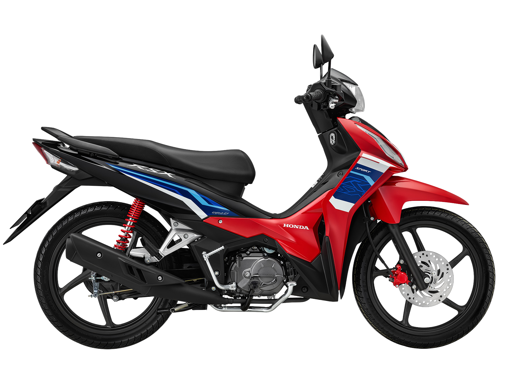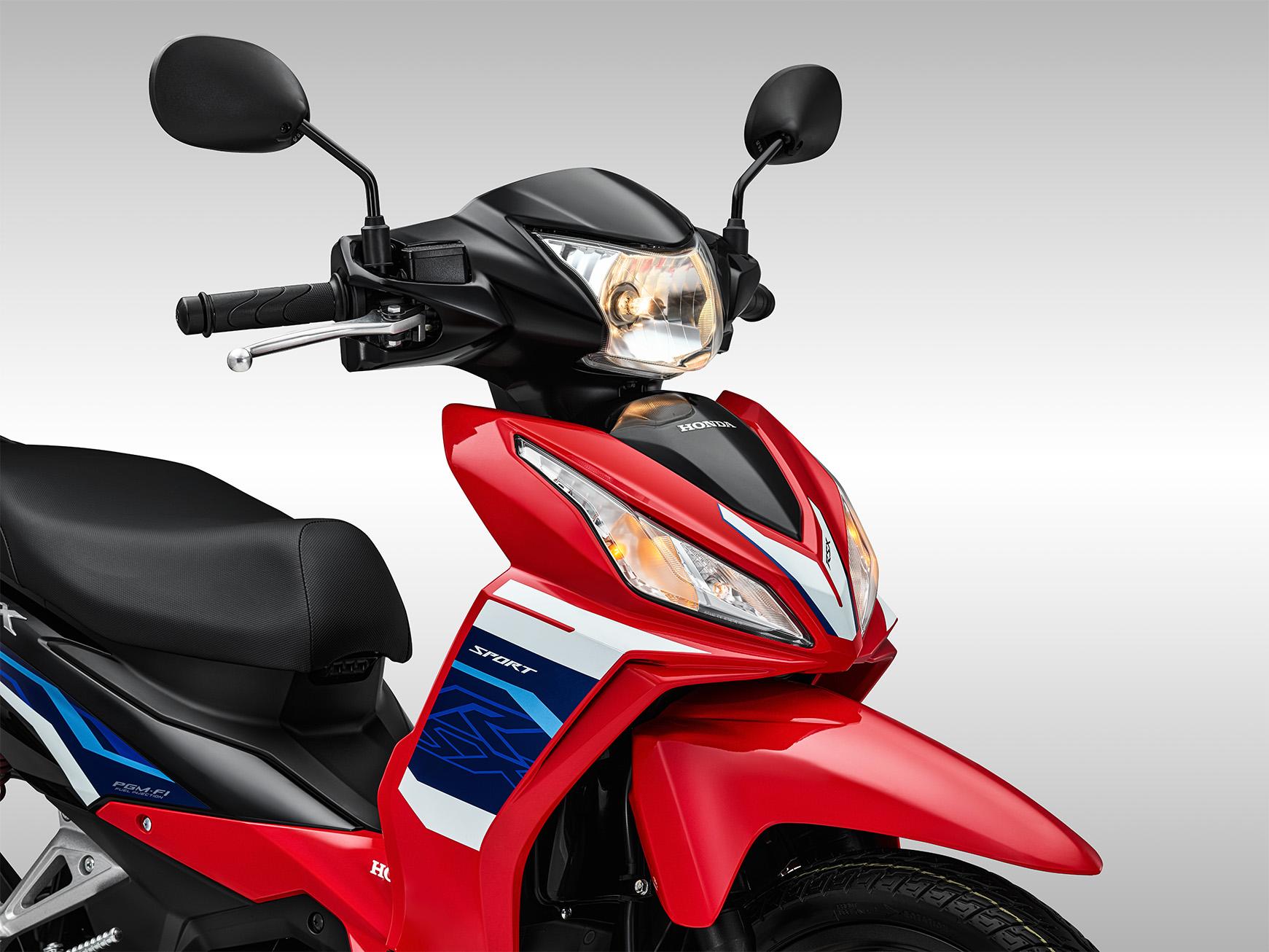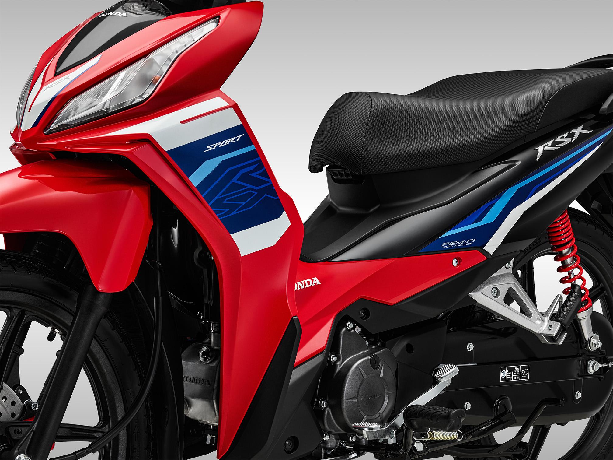 Đặc biệt ở phiên bản thể thao Đỏ Đen, tem xe được thiết kế lấy cảm hứng từ những mẫu xe đua chuyên nghiệp. Ba màu Đỏ – Xanh – Trắng phối hợp tinh tế trên mặt nạ và thân xe, tạo nên diện mạo mạnh mẽ, đậm chất tốc độ và cá tính.