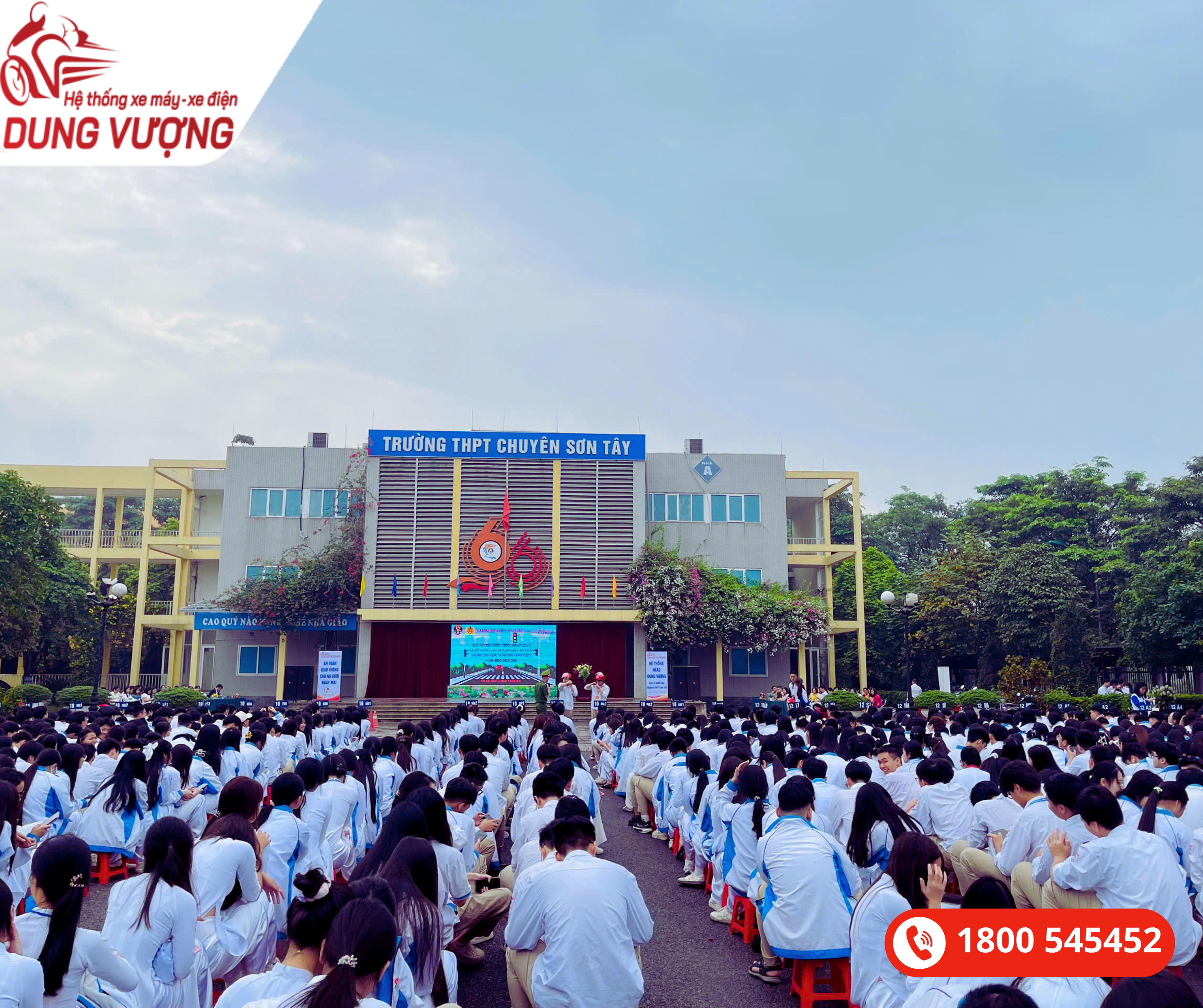 Tiếp tục các hoạt động tuyên truyền pháp luật về an toàn giao thông, ngày 20/04/2026 Hệ Thống Xe Máy Xe Điện Dung Vượng đã phối kết hợp với Phòng CSGT đội 9 và Trường THPT chuyên Sơn Tây - Hà Nội tổ chức chương trình "An toàn giao thông cho nụ cười ngày mai" cho các em học sinh của nhà trường.
