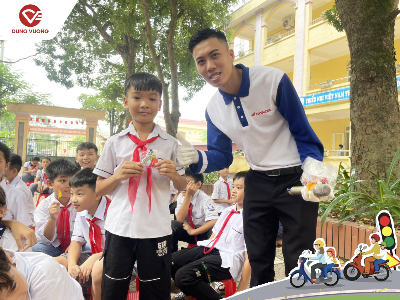 Thông qua các hoạt động chia sẻ về kiến thức an toàn giao thông và kỹ năng lái xe an toàn, Hệ Thống Xe Máy Dung Vượng hy vọng các em học sinh sẽ luôn tự ý thức được vai trò và trách nhiệm của bản thân khi tham gia giao thông, các bậc phụ huynh hãy luôn là tấm gương sáng phản chiếu hành vi văn hóa, đặc biệt là văn hóa giao thông từ việc nhỏ nhất là đội mũ bảo hiểm cho con em mình.