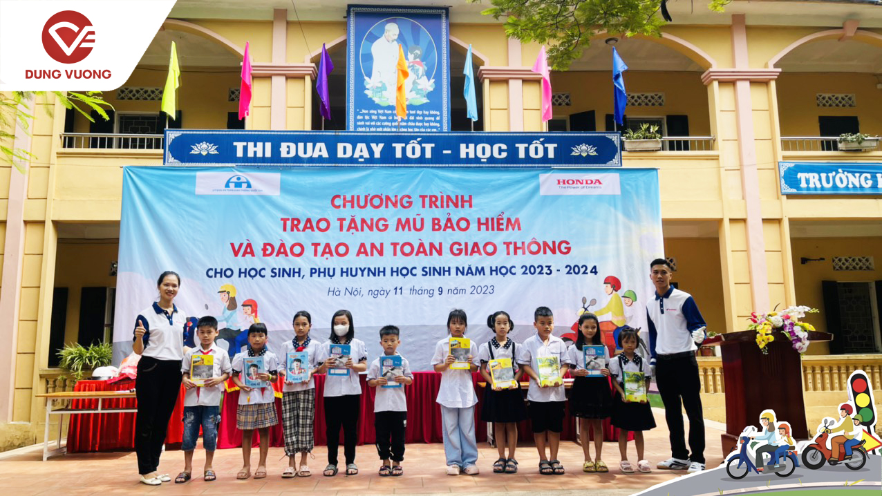 An toàn giao thông cho các em học sinh luôn được nhà trường và các bậc phụ huynh quan tâm. Thấu hiểu được điều ấy Hệ Thống Xe Máy Dung Vượng luôn nỗ lực hết mình để lan tỏa nhiều hơn những hoạt động tuyên truyền, đào tạo kĩ năng để nâng cao ý thức tham gia giao thông an toàn cho tất cả mọi người, đặc biệt các em học sinh - những mầm xanh của đất nước.