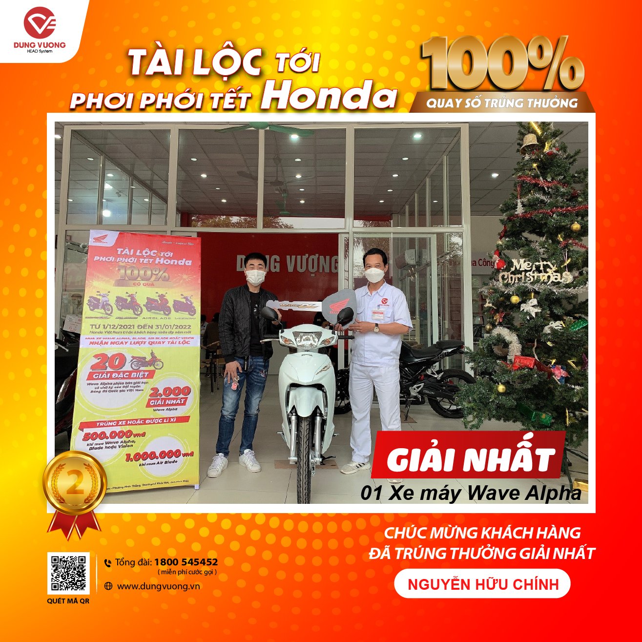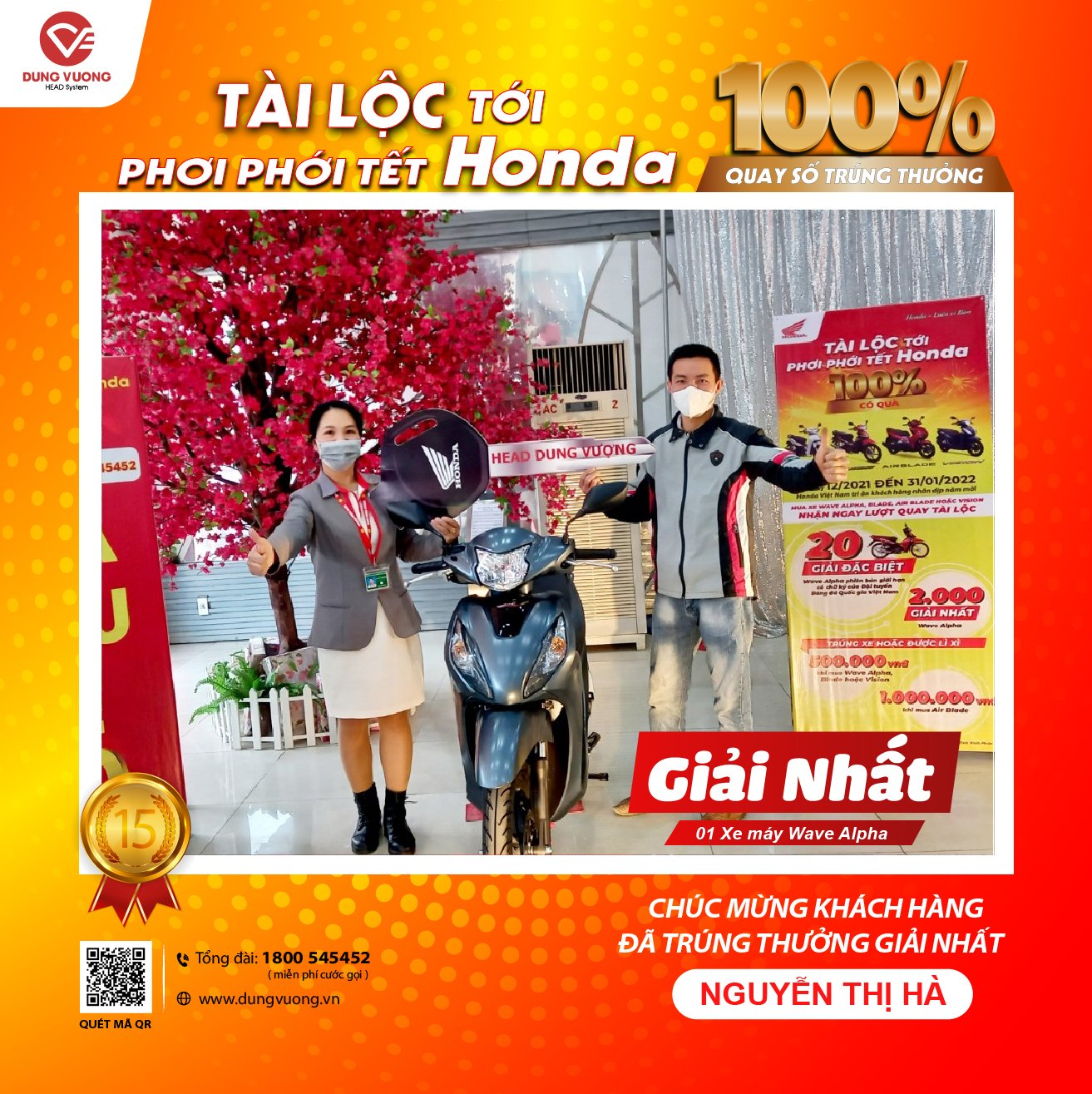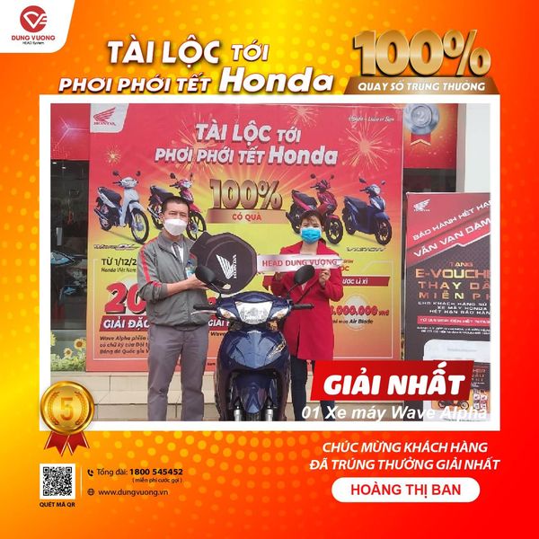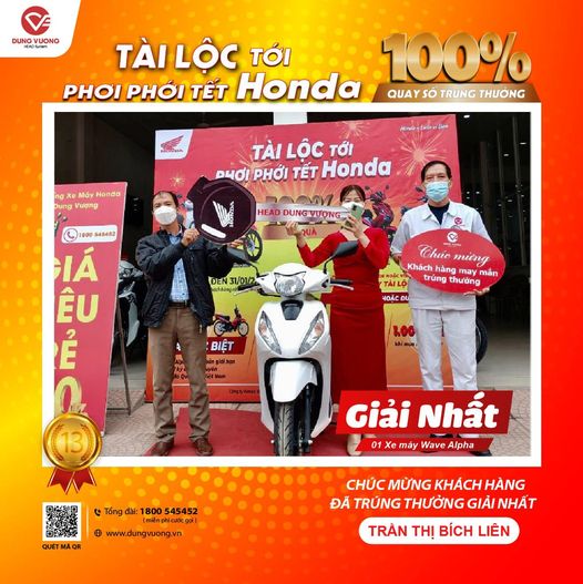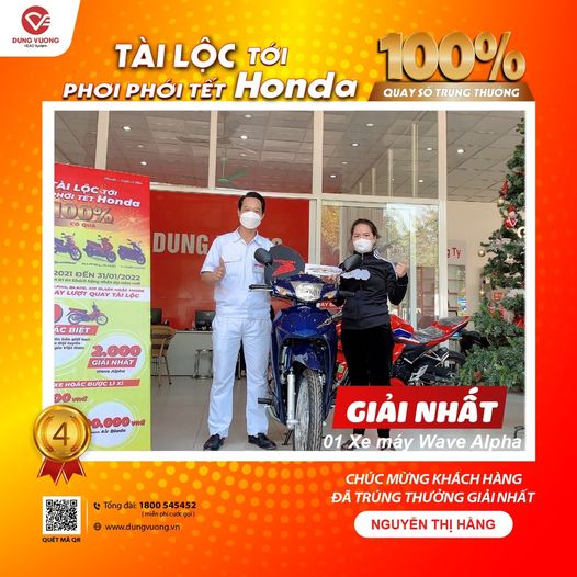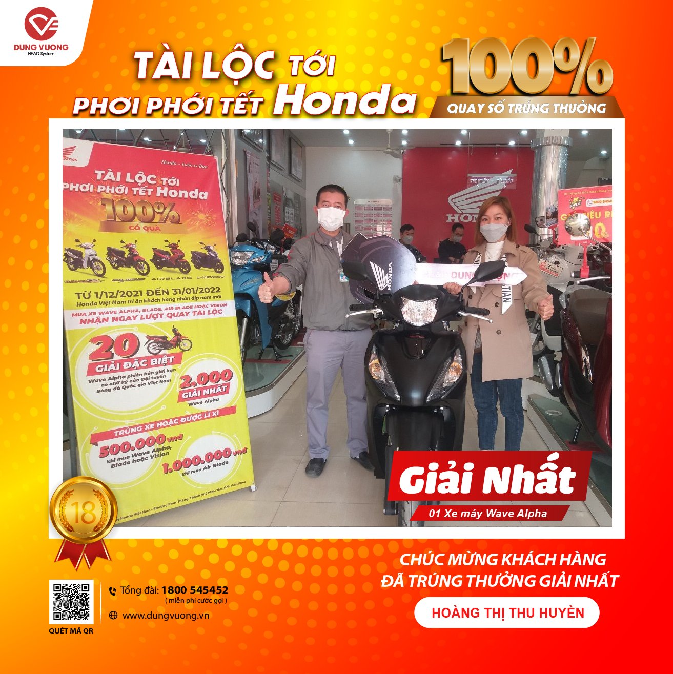 Xin Chúc mừng các khách hàng may mắn MUA XE – TRÚNG XE tại các cửa hàng thuộc Hệ Thống Xe Máy Dung Vượng trong chương trình khuyến mãi cực khủng “TÀI LỘC TỚI – PHƠI PHỚI TẾT Honda” từ ngày 01/12/2021 - 31/01/2022.