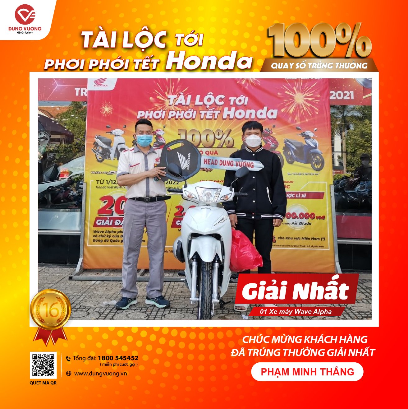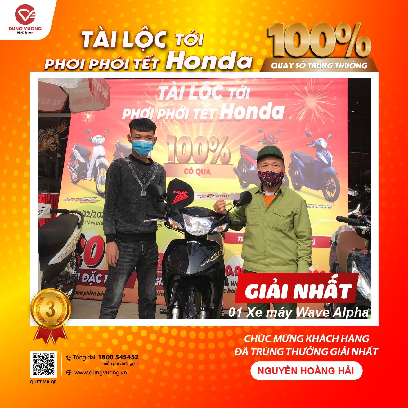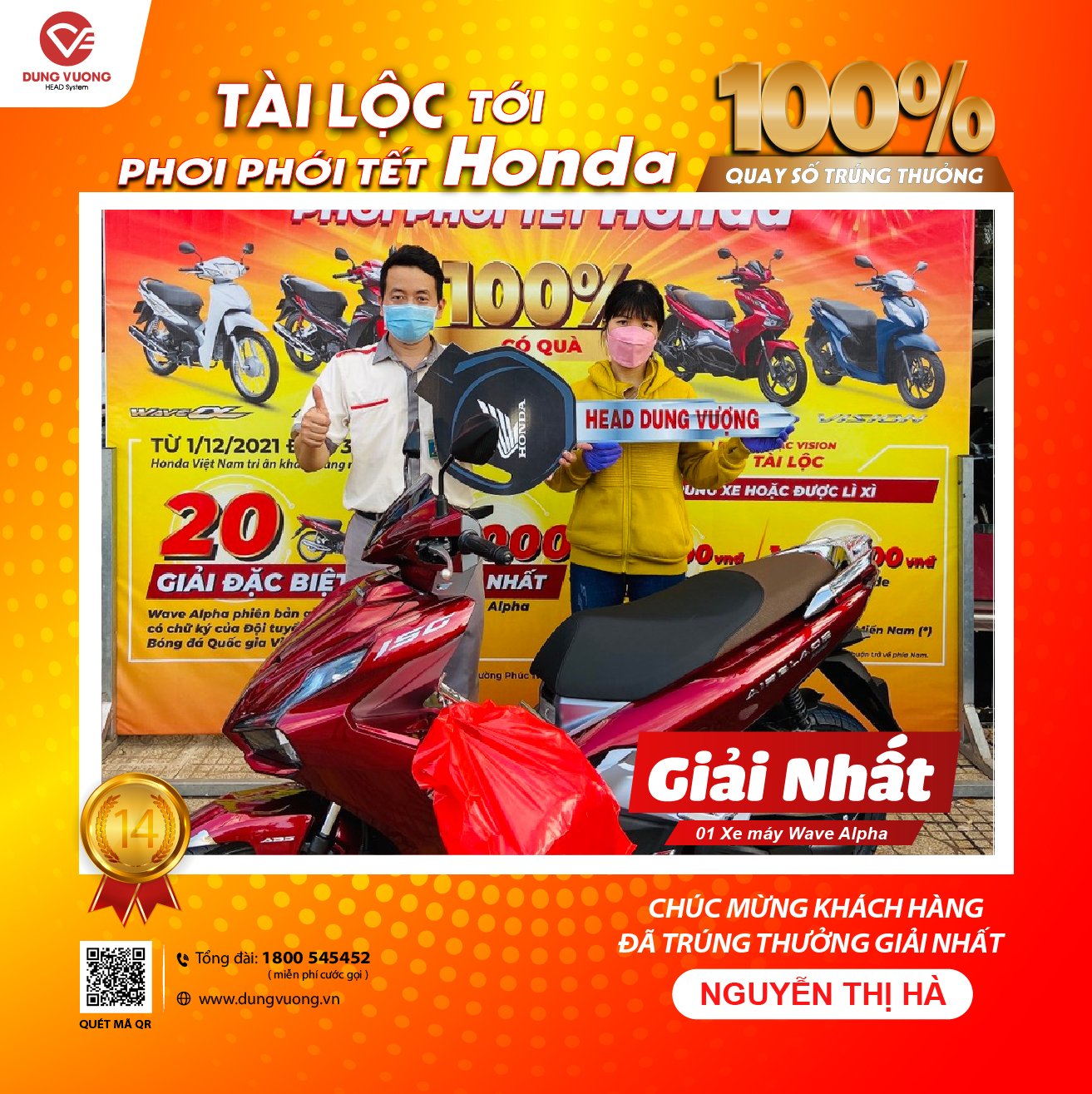 Xin Chúc mừng các khách hàng may mắn MUA XE – TRÚNG XE tại các cửa hàng thuộc Hệ Thống Xe Máy Dung Vượng trong chương trình khuyến mãi cực khủng “TÀI LỘC TỚI – PHƠI PHỚI TẾT Honda” từ ngày 01/12/2021 - 31/01/2022.