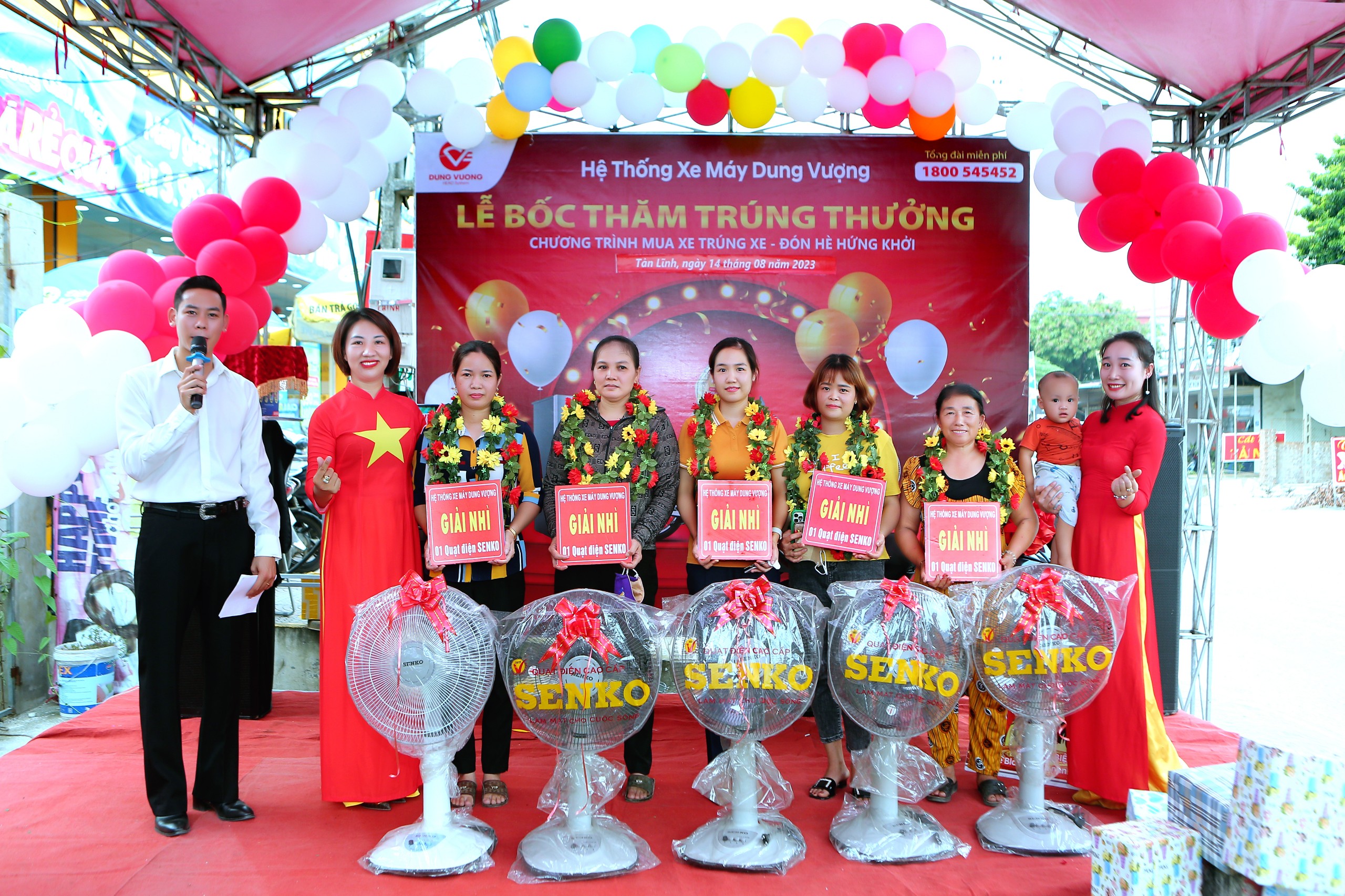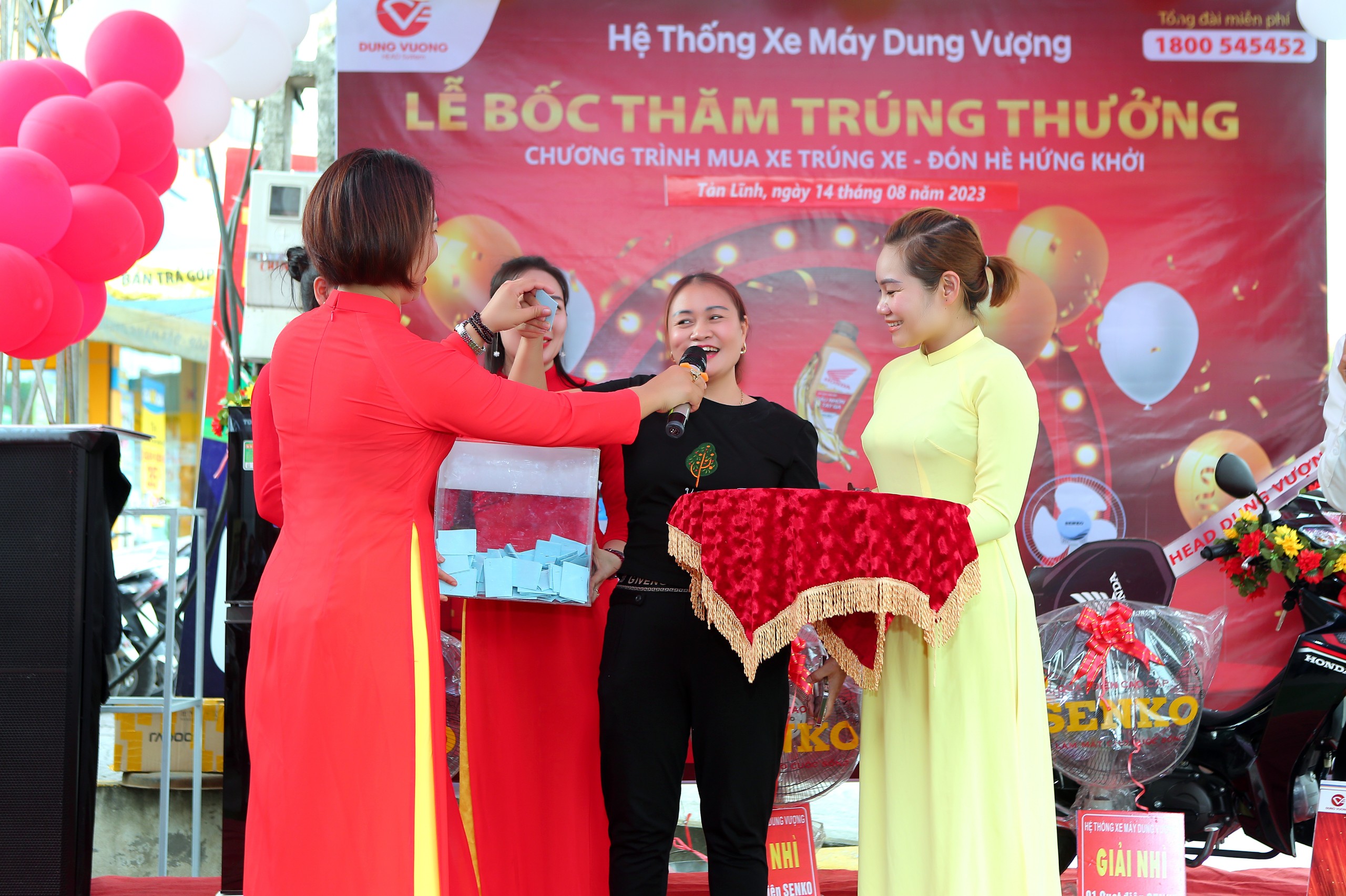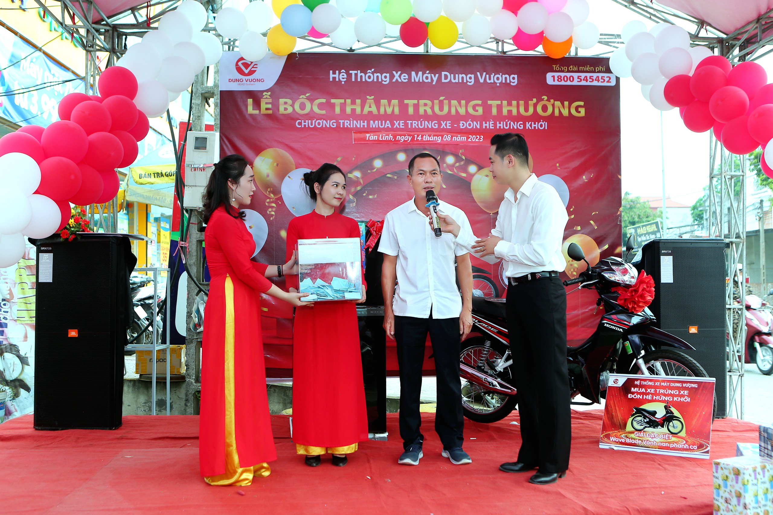 Ngày 14/08/2023 Hệ Thống Xe Máy Dung Vượng đã tưng bừng tổ chức buổi lễ bốc thăm - Trao thưởng chương trình "Mua xe trúng xe - Đón hè hứng khởi" tại cửa hàng xe máy Dung Vượng Tản Lĩnh - Yên Thành, Tản Lĩnh, Ba Vì, Hà Nội.