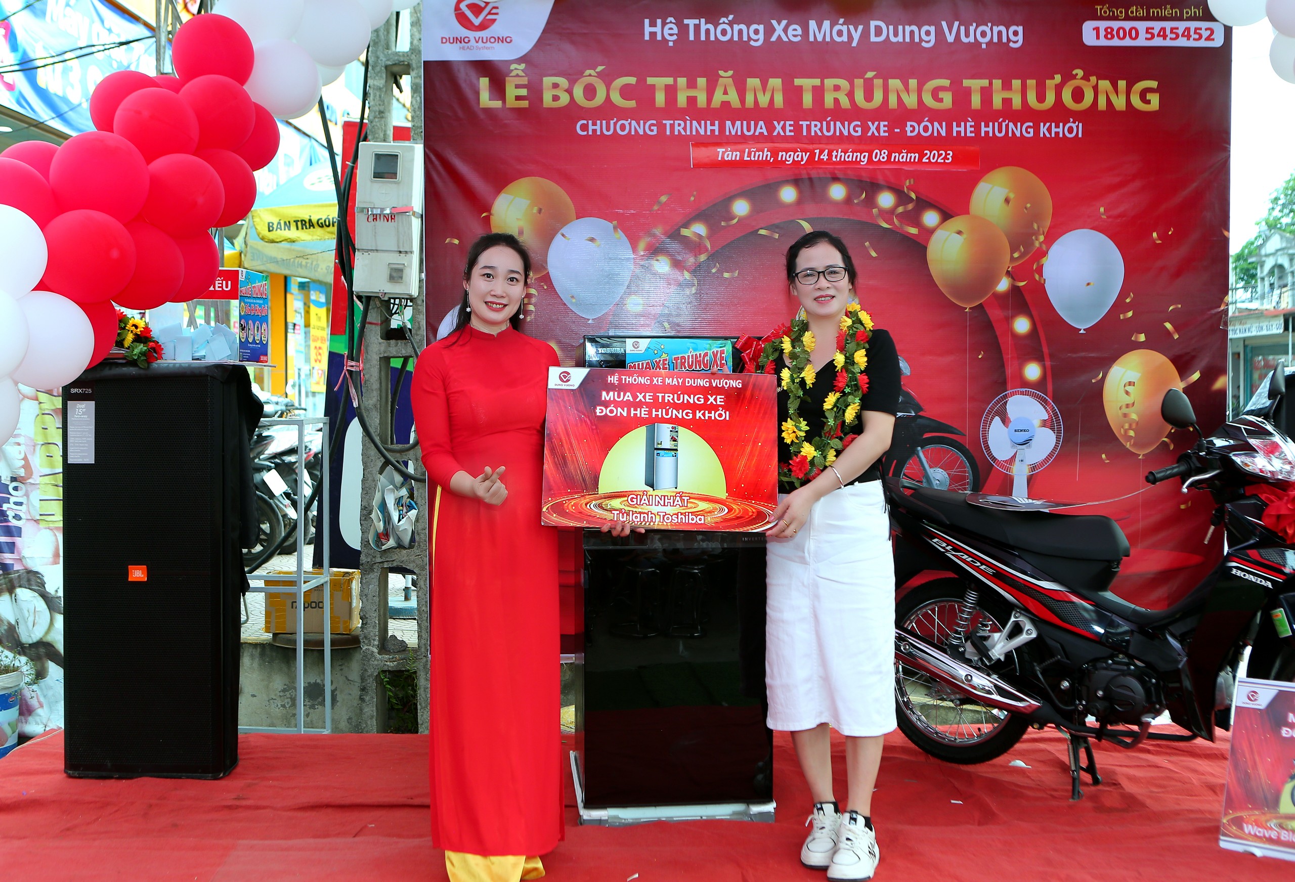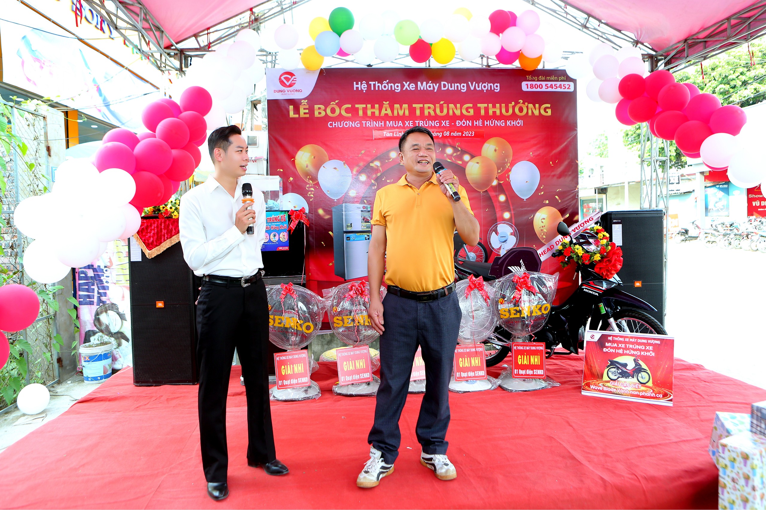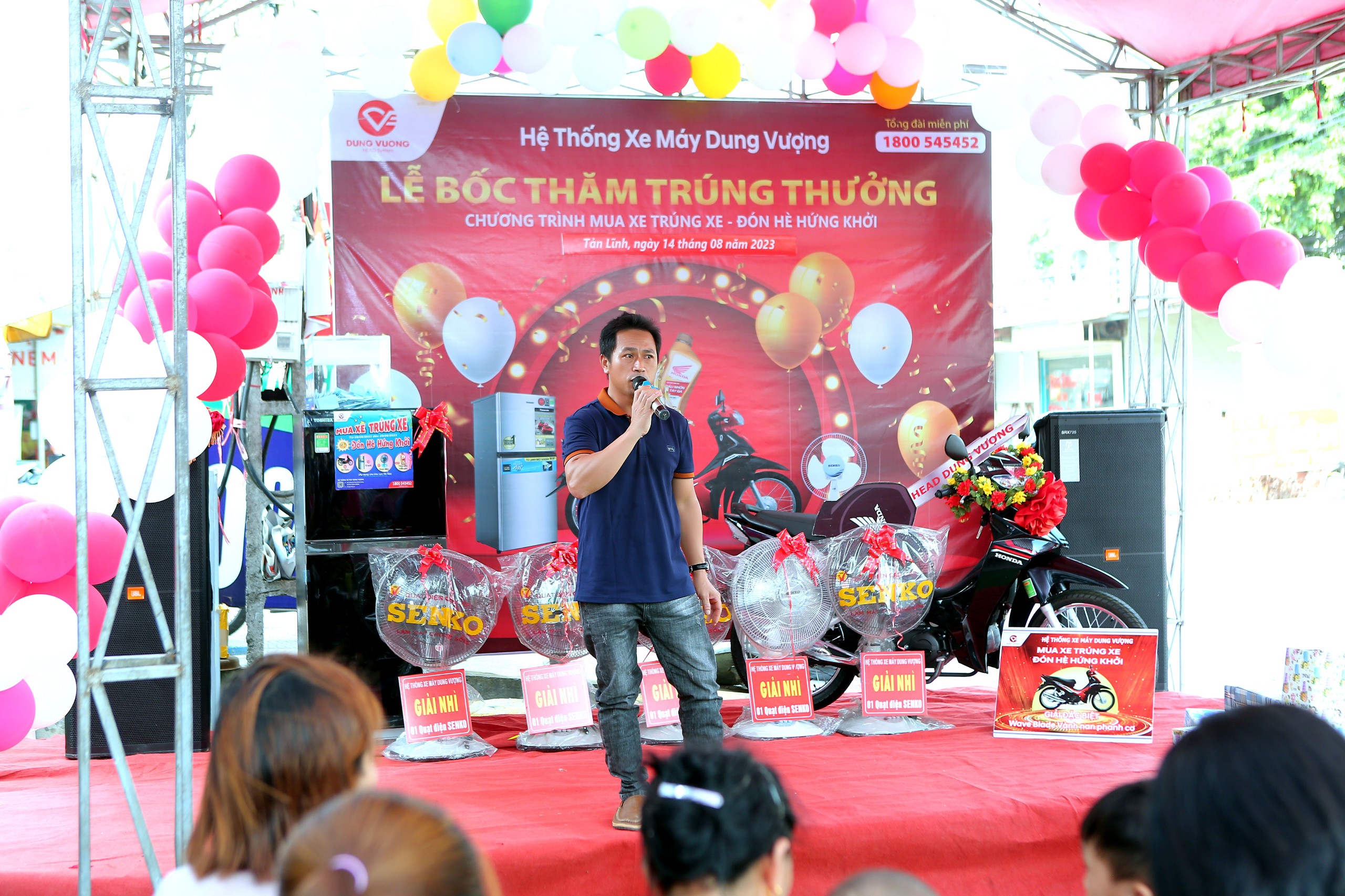 Ngày 14/08/2023 Hệ Thống Xe Máy Dung Vượng đã tưng bừng tổ chức buổi lễ bốc thăm - Trao thưởng chương trình "Mua xe trúng xe - Đón hè hứng khởi" tại cửa hàng xe máy Dung Vượng Tản Lĩnh - Yên Thành, Tản Lĩnh, Ba Vì, Hà Nội.
