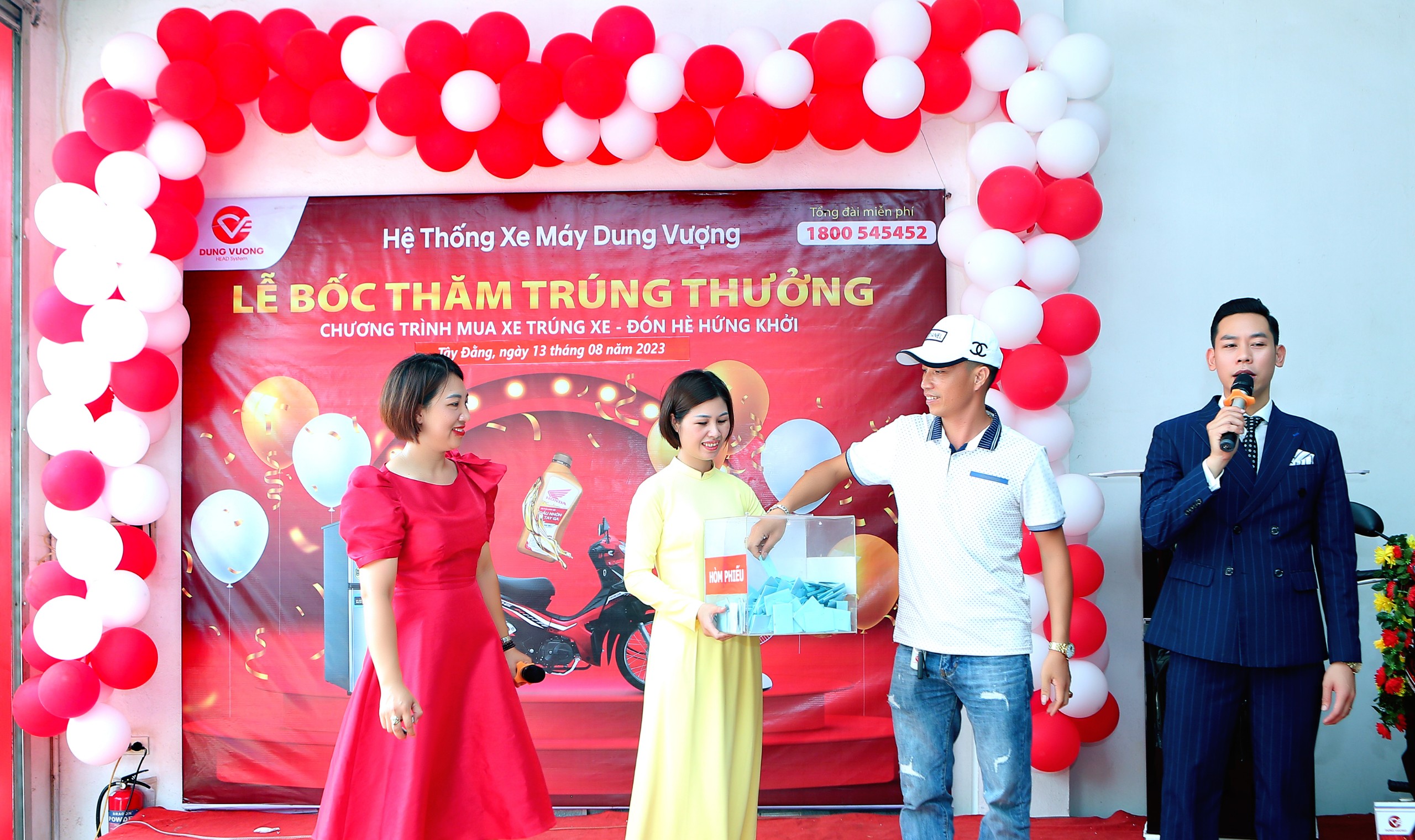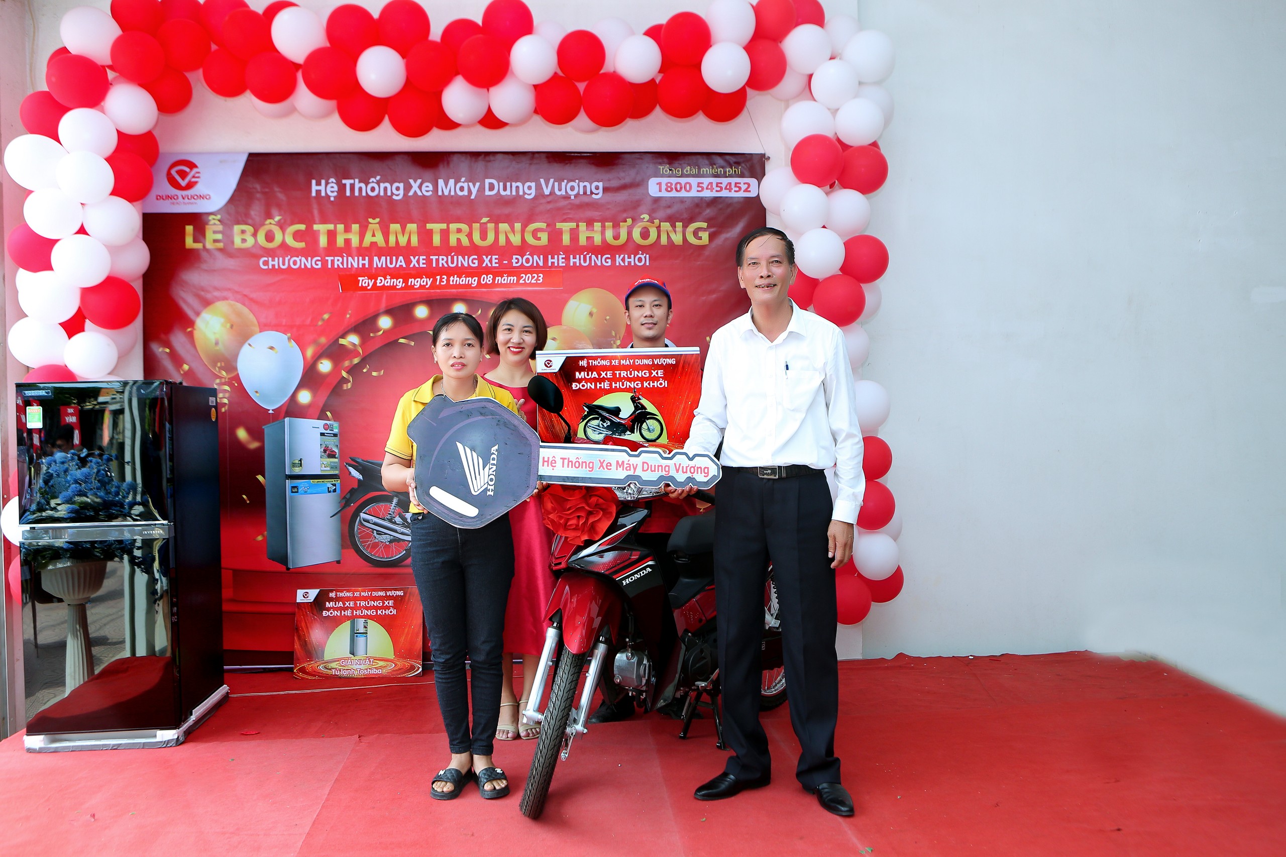 Hệ Thống Xe Máy Dung Vượng Xin chúc mừng các Quý khách đã TRÚNG THƯỞNG trong Chương trình khuyến mãi "MUA XE TRÚNG XE - ĐÓN HÈ HỨNG KHỞI". Dành cho các khách hàng mua xe tại Cửa hàng xe máy Dung Vượng - 648 Phố mới, Tây Đằng, Ba Vì, Hà Nội.