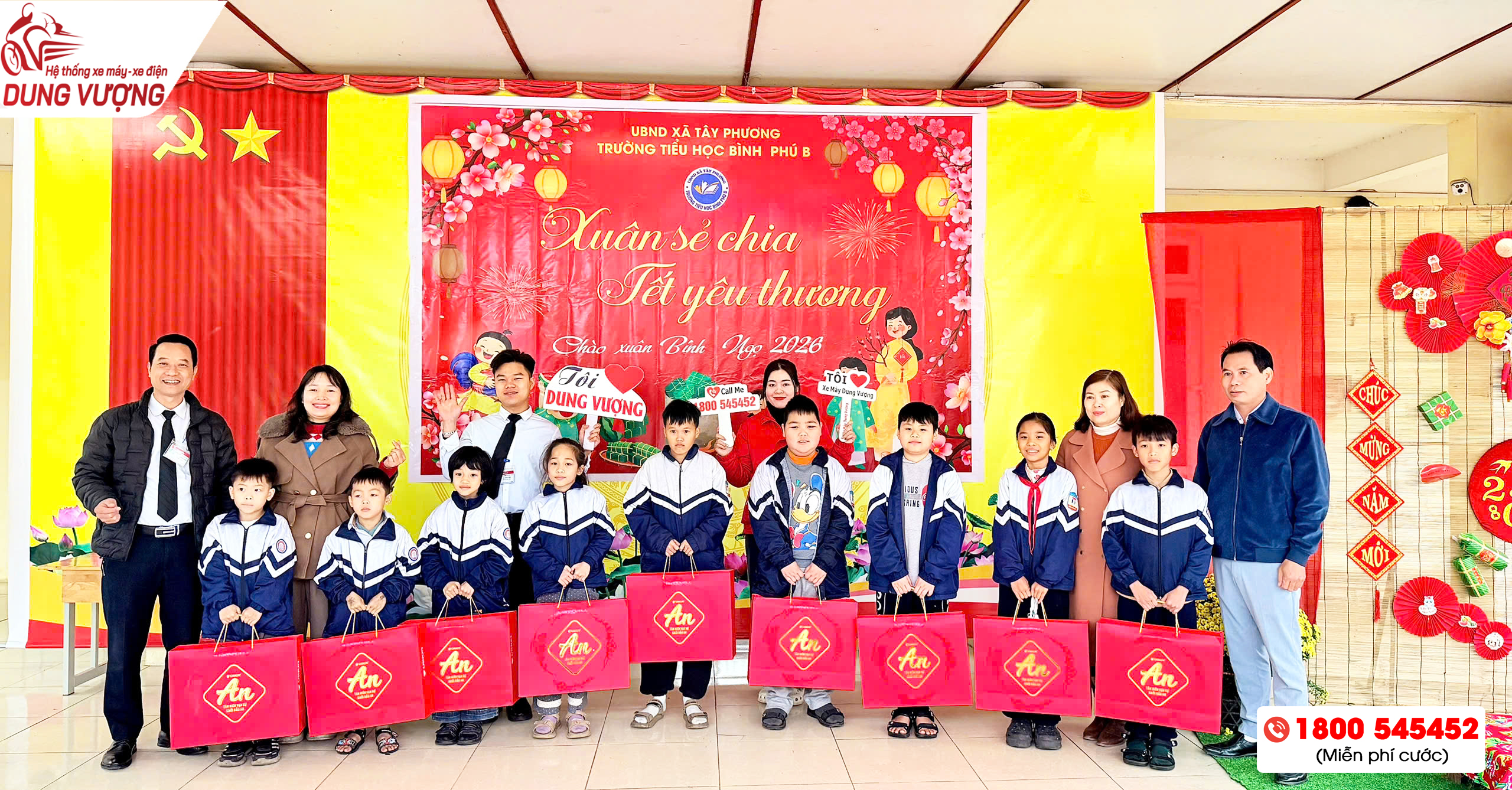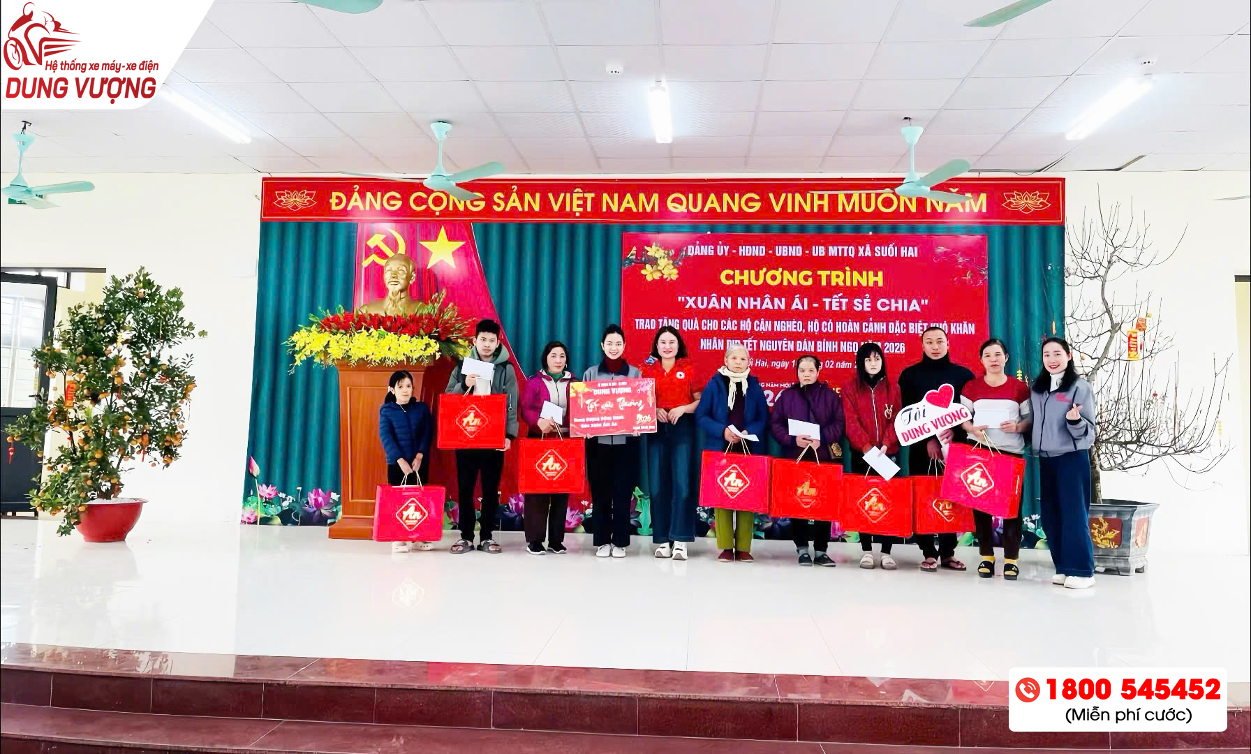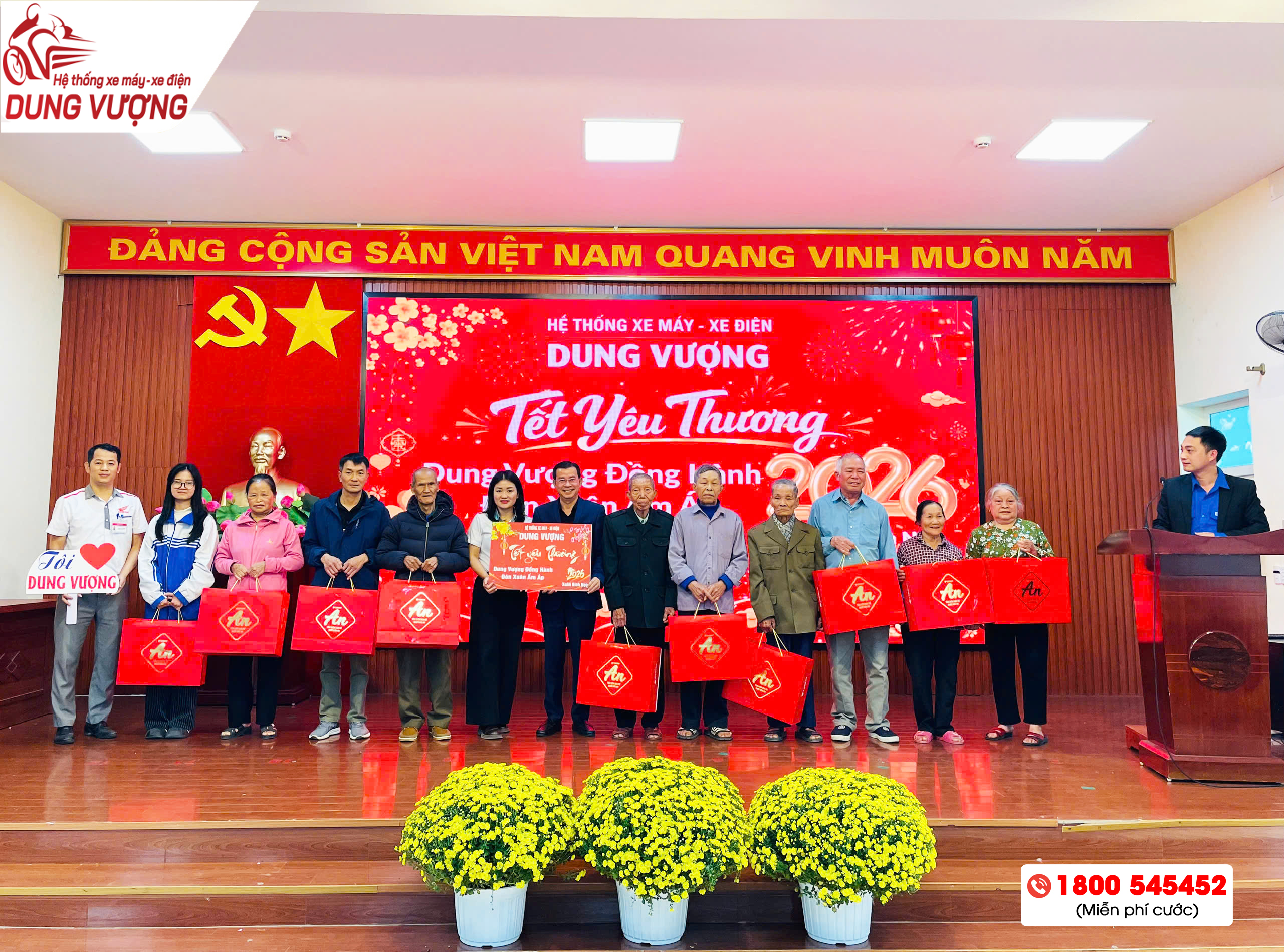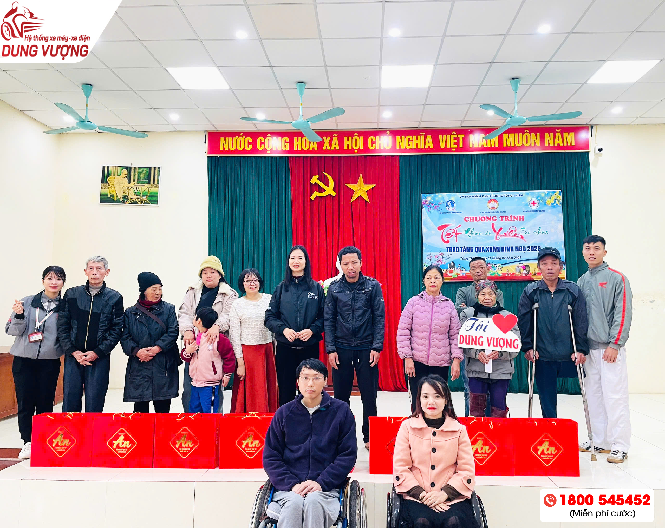 Nhân dịp Tết Nguyên Đán 2026, Hệ Thống Xe Máy Xe Điện Dung Vượng đã tổ chức chương trình trao tặng những phần quà ý nghĩa đến các hộ gia đình khó khăn, các em học sinh có hoàn cảnh đặc biệt và người khuyết tật trên địa bàn.