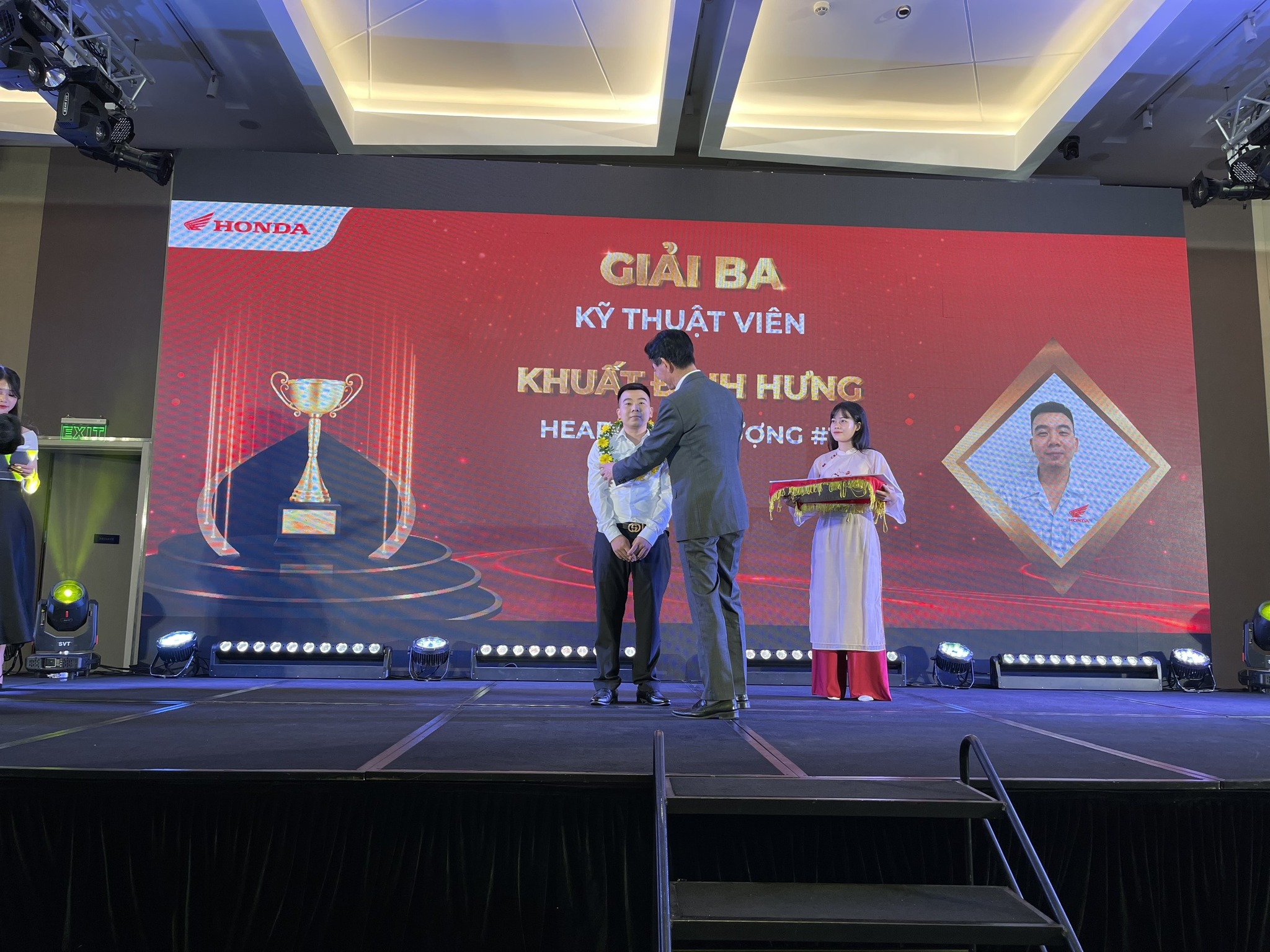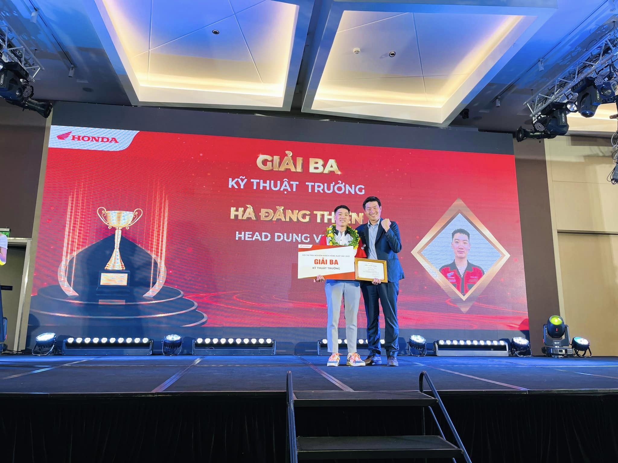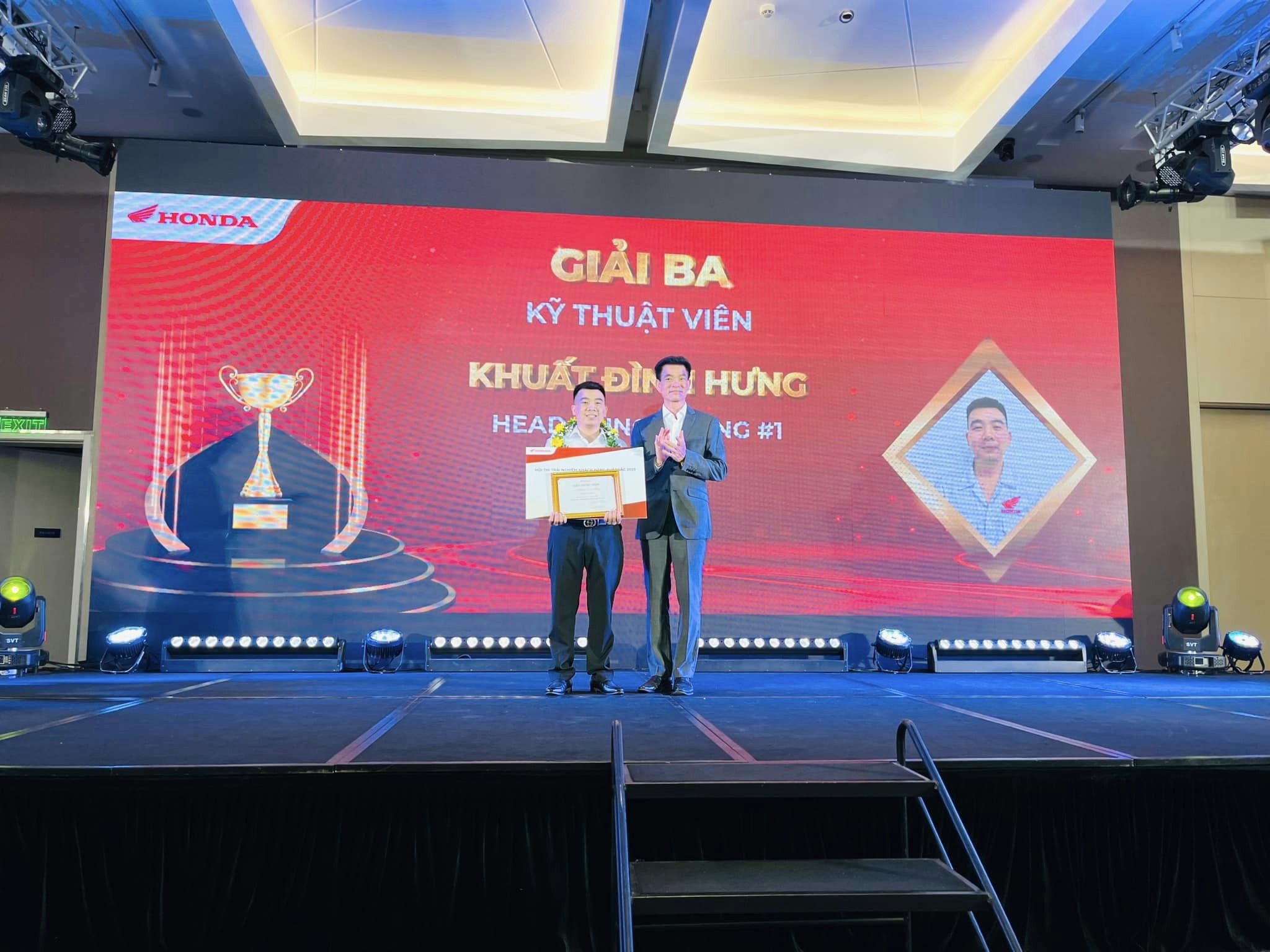 Xin chúc mừng Kỹ thuật trưởng - Hà Đăng Thiện và kỹ thuật viên Khuất Đình Hưng đã xuất sắc dành giải ba toàn quốc Hội thi trải nghiệm khách hàng xuất sắc năm 2023 do Honda Việt Nam tổ chức.