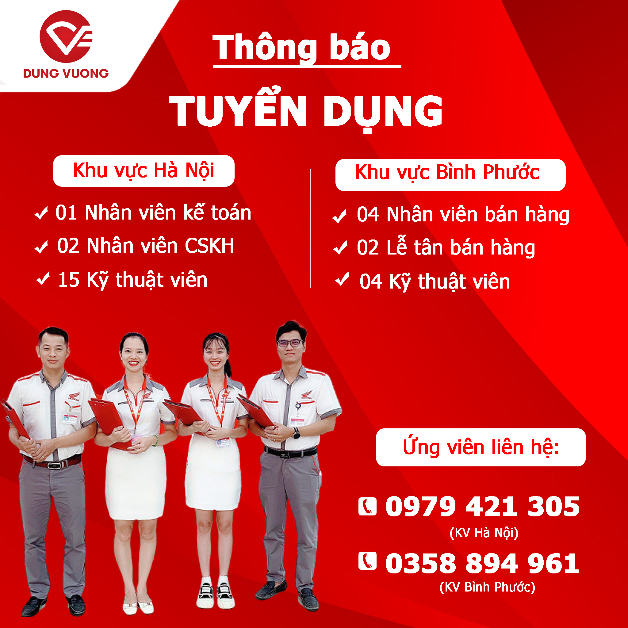 Hệ Thống Xe Máy Dung Vượng thông báo tuyển dụng các vị trí sau: