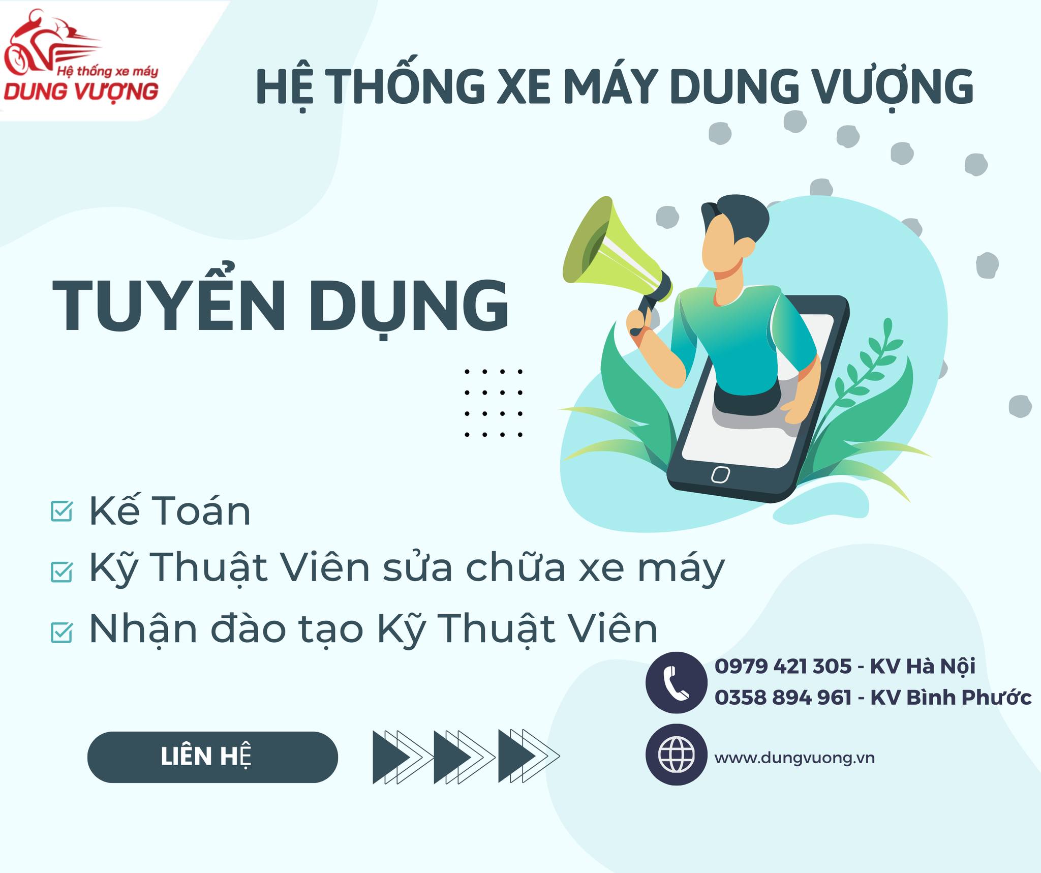 Do nhu cầu công việc, Hệ thống xe máy Dung Vượng cần tuyển: