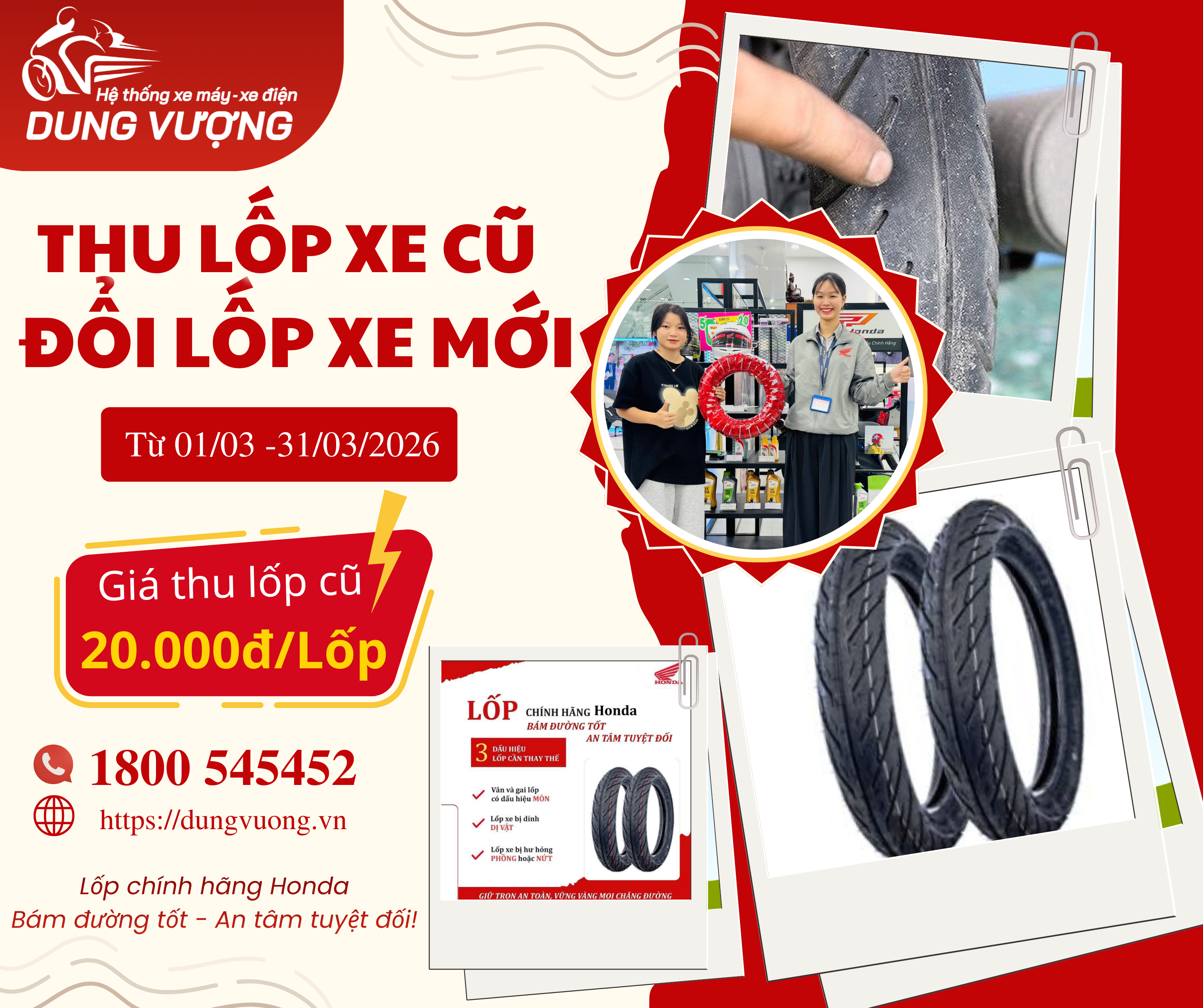 Đừng bỏ lỡ cơ hội tiết kiệm chi phí và mang lại sự an toàn cho chuyến đi của bạn. Ghé ngay Hệ thống xe máy xe điện Dung Vượng thay lốp xe chính hãng Honda nhé!