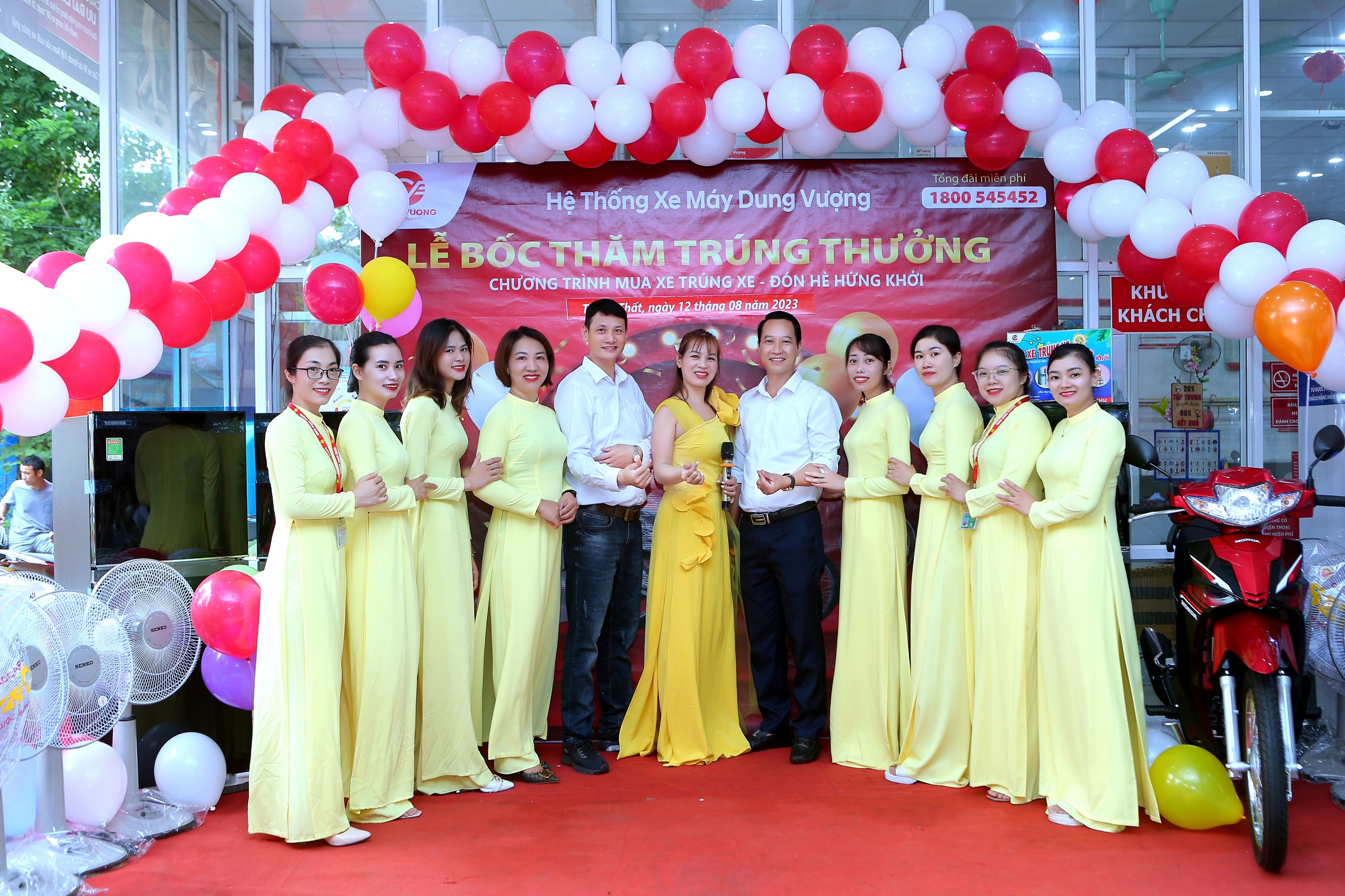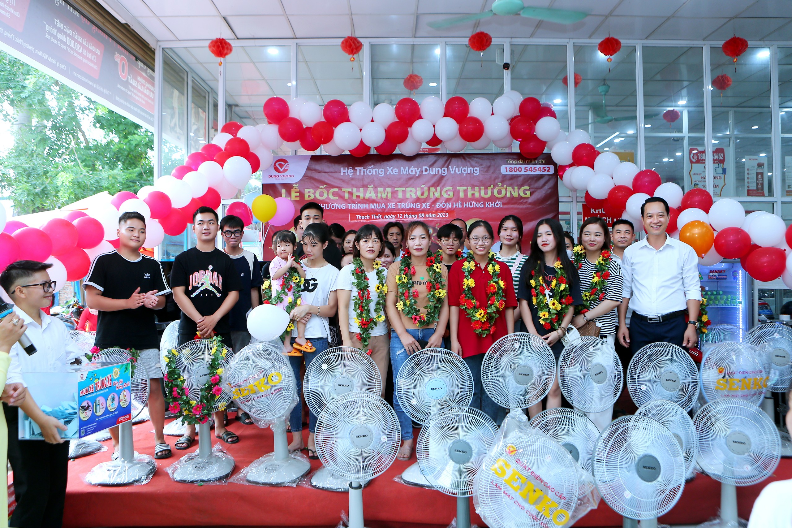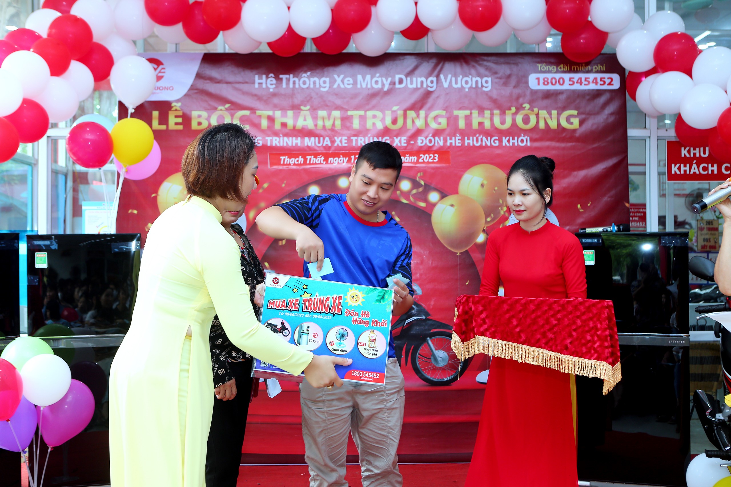 Chương trình bốc thăm - Trao thưởng "Mua xe trúng xe - Đón hè hứng khởi" tại cửa hàng xe máy Dung Vượng Thạch Thất đã khép lại. Với 01 xe máy Honda Blade 110cc, 03 tủ lạnh Toshiba, 20 quạt đứng Senko cùng hàng trăm phiếu thay dầu miễn phí đã được gửi tới Quý khách hàng. Một lần nữa, Hệ Thống Xe Máy Dung Vương xin được chúc mừng các khách hàng đã may mắn trúng thưởng và gửi lời cảm ơn đến Quý khách hàng đã luôn tin tưởng và đồng hành cùng xe máy Dung Vượng trong suốt thời gian qua.