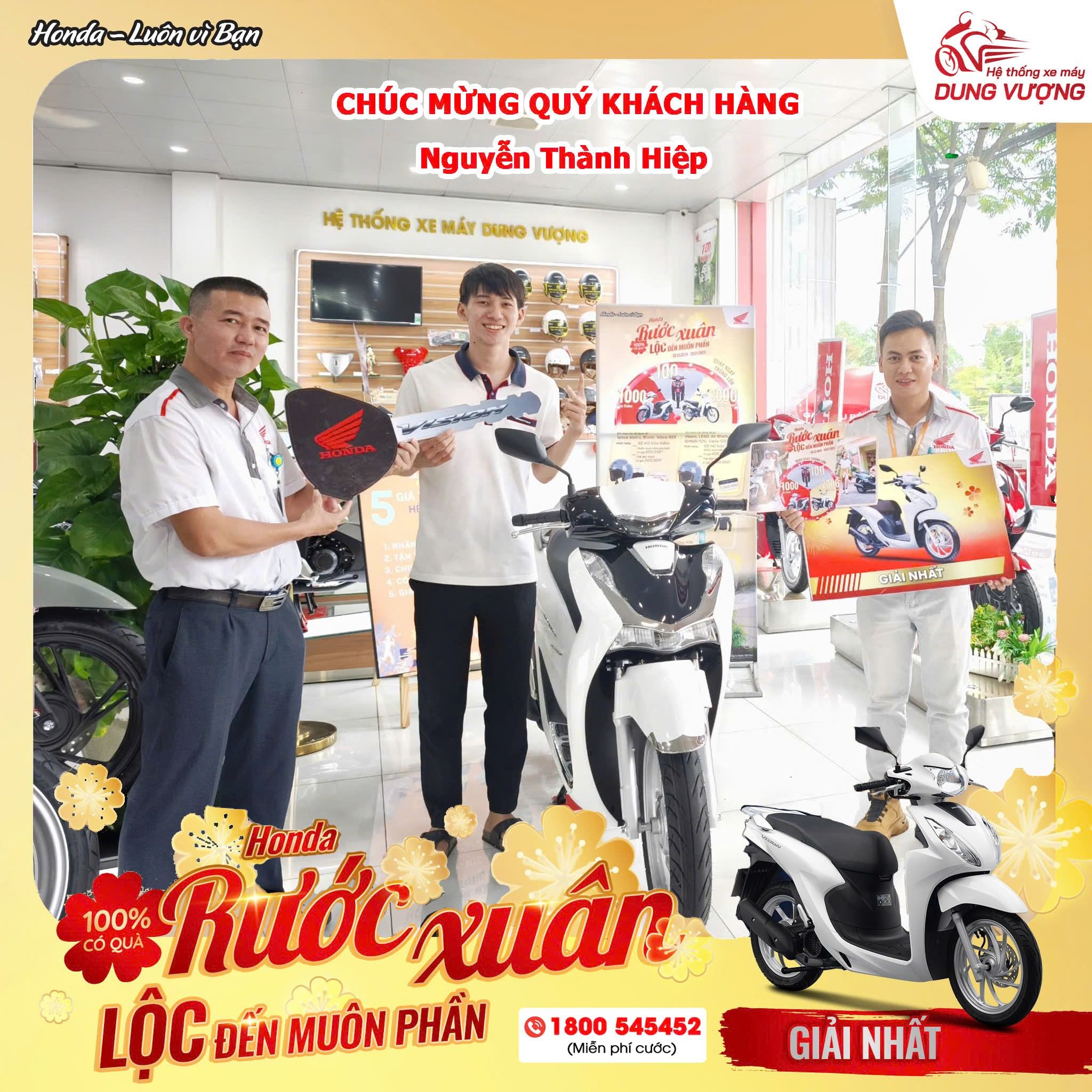 Chúc mừng khách hàng: Nguyễn Thành Hiệp đã may mắn trúng giải nhất 1 chiếc xe Honda Vision khi mua xe SHi tại HEAD Dung Vượng 3