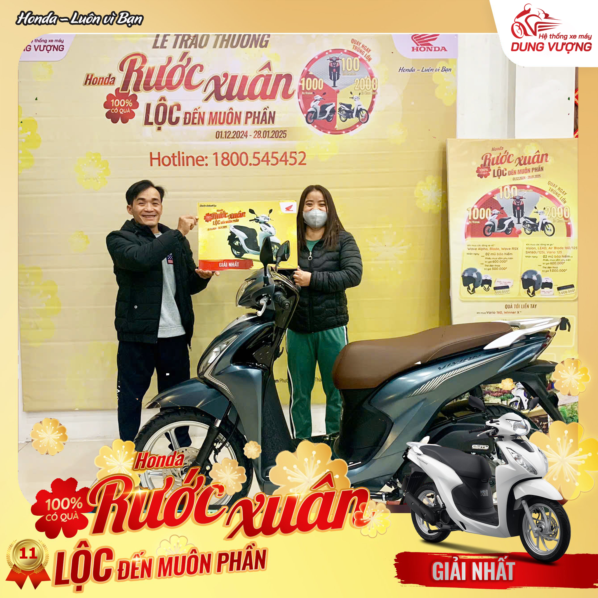 Khách hàng mua xe Vision trúng giải Nhất: 01 chiếc Honda Vision trong chương trình "Honda rước xuân - Lộc đến muôn phần".