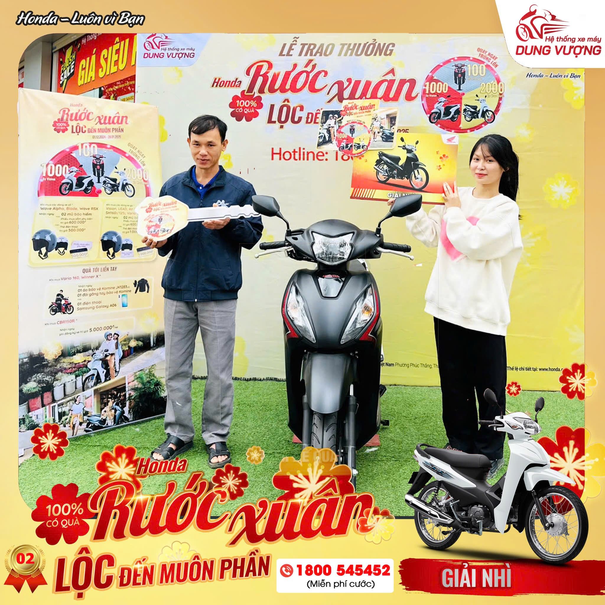 Xin chúc mừng Quý khách hàng tiếp theo của Chương Trình “Honda Rước Xuân - Lộc Đến Muôn Phần” đã mua xe và quay số trúng xe tại Hệ Thống Xe Máy Dung Vượng.