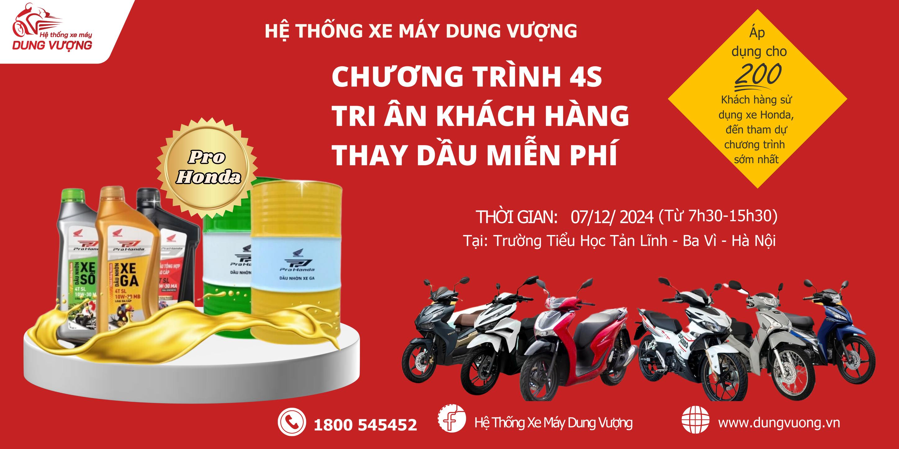 Hệ Thống xe máy Dung Vượng kính mời Qý khách tới tham dự: Chương trình 4S ,Tri ân khách hàng, Thay dầu miễn phí